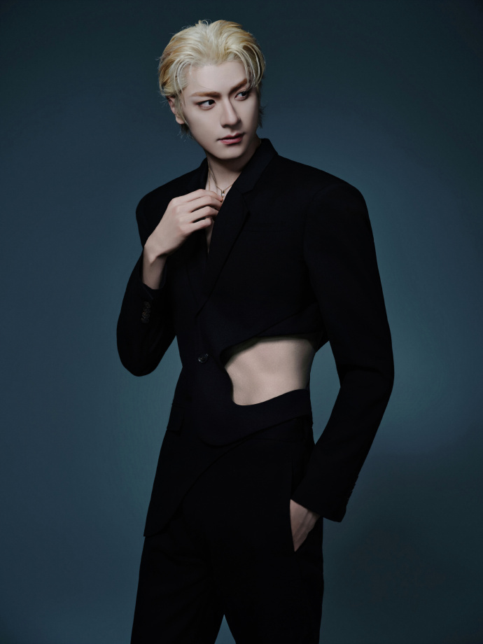 林一露腰西装林一金发黑西装林一露腰西装,林一金发黑西装,林一白色情人节营业大片