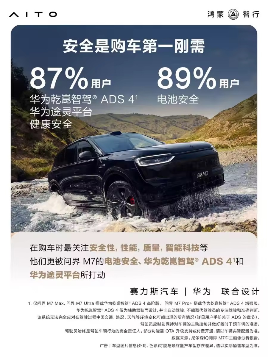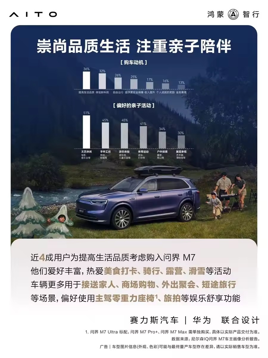 尼尔森报告称问界M7净推荐值达85%问界M7累计交付已经超过43万台,市场表现挺稳的,尼尔森的车主报告里还有个数据挺夸张——85%的车主愿意主动推荐。能做到这种口碑,大多数时候都是用户真金白银投出来的。近9成车主愿意主动推荐问界M7