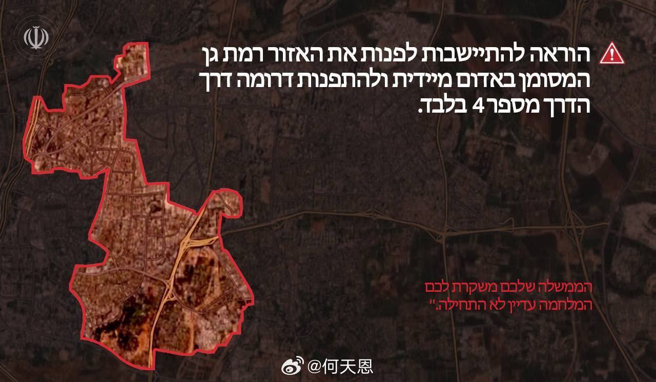 向居民发出警告,要求他们立即从标有红色标记的拉马特甘地区撤离并向南移动。