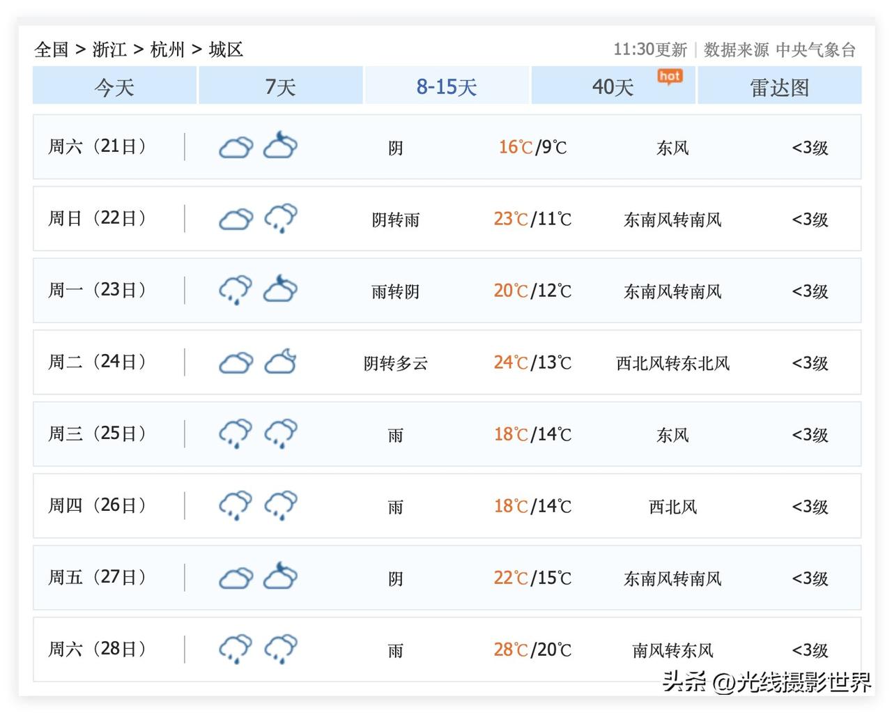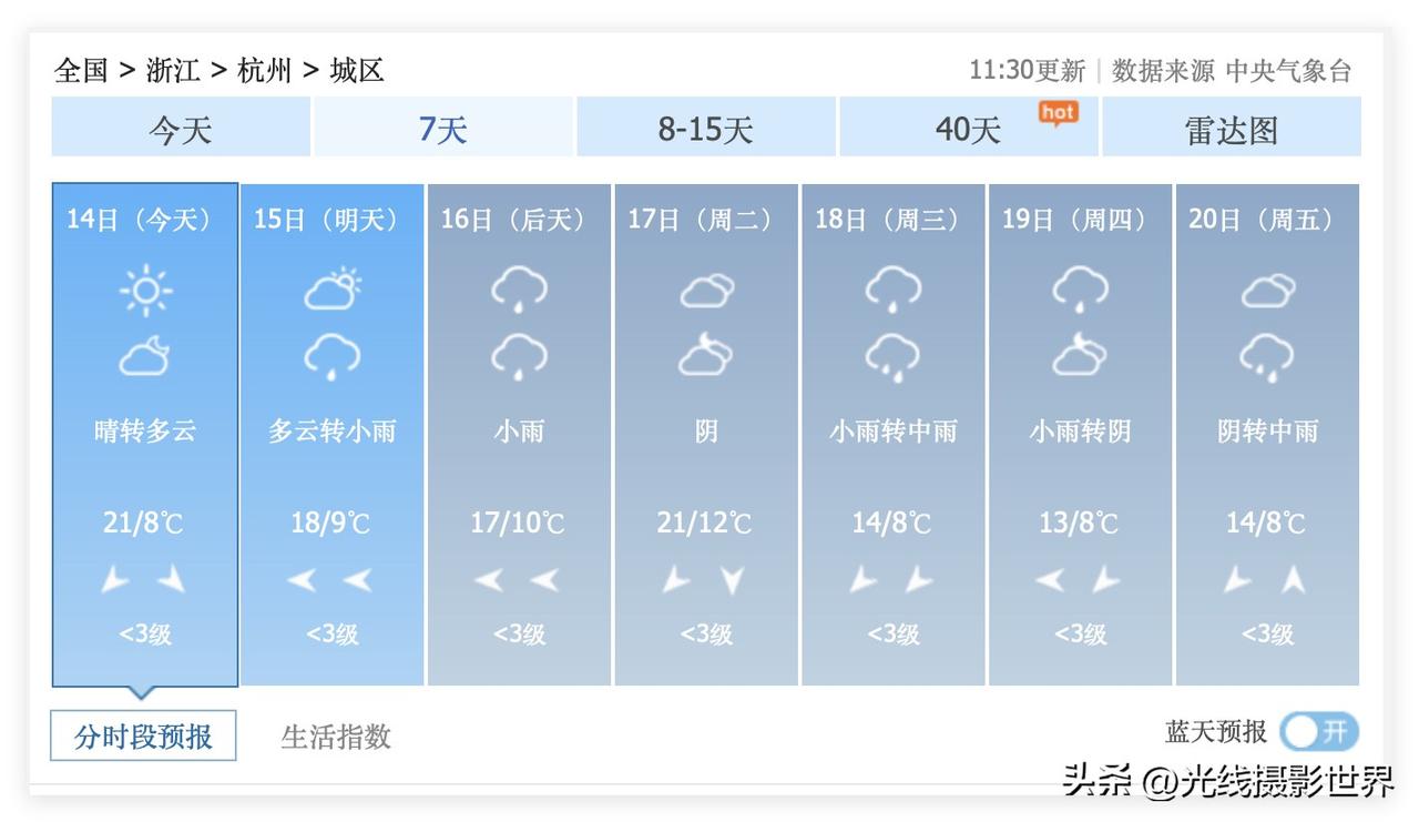 不得不说,老天爷是照顾杭州人的!虽然3月16日到28日杭州市春雨连绵,但是,这周末,3月14日,星期六,杭州晴转多云……3月15日,星期天白天,杭州多云……这周末,杭州天气好极了,最高气温21度! 这周末,3月14日和15日,太子湾的郁金香盛开了,白堤的桃花盛开了,桃红柳绿的西湖景色,挤爆了人山人海! 3月16日,星期一,杭州小雨…… …… 3月18日到20日,杭州市,可能每天都要下雨…… 2026年春天,杭州的各种花花的花期,普遍提前了10天左右盛开……打乱了很多人的出行计划! 很多人都是计划3月20日以后去杭州踏青赏花……但是,按照目前这个形势,3月20日以后去杭州,天气不好,花期恐怕也是很勉强了……早知道的话,我就3月10日左右抵达杭州……哎呀! 好吧,杭州市,即将迎来持续的阴雨连绵,即将降雨降温……花儿们即将迎来雨打风吹的辣手摧花……