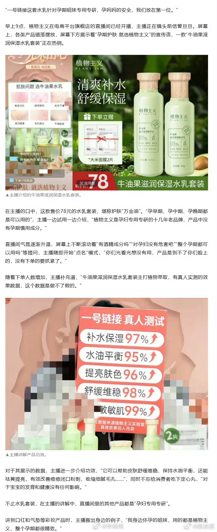 【315独家调查 | #孕妇专用成化妆品收割工具#:普通备案化妆品披上“专研”外衣 卖出10万+】#孕妇专用化妆品实为普通化妆品#客服称“已经怀孕的准妈妈可以用,全周期都适合,特殊期前3个月使用时需避开腹部位置。”然而,国产普通化妆品备案信息显示,植物主义橄榄舒纹弹润精华油于2023年10月首次备案,为国产普通化妆品,备案编号为苏G妆网备字2023007443,使用人群为“03 普通人群”,不仅没有孕妇等特殊人群,也没有与孕妇相关的测试结果、文献材料等。