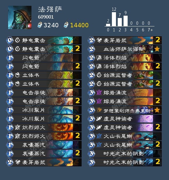 炉石传说 推荐一套上分效率的法强萨:哐哐干脸,首先饮品回调太猛了,其次火山长尾蜥抽熔岩涌流,有法强的熔岩涌流打脸非常疼。
