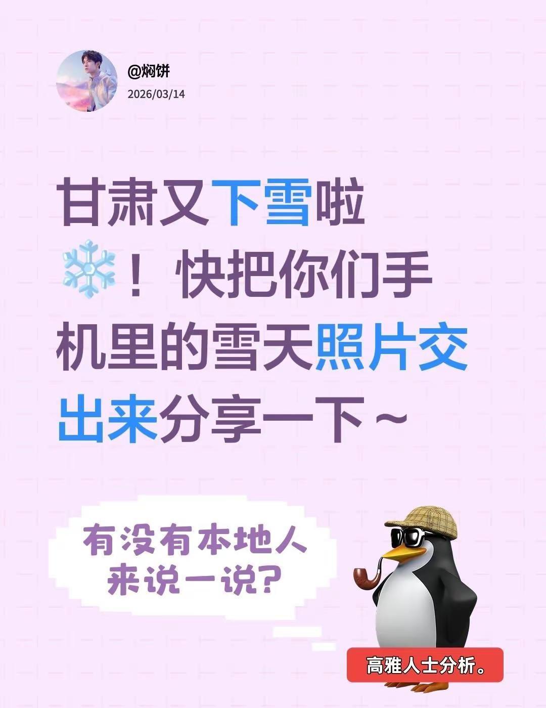 甘肃又下雪啦❄️!快把你们手机里的雪天照片交出来分享一下~下雪氛围感 甘肃下雪 创作者中心