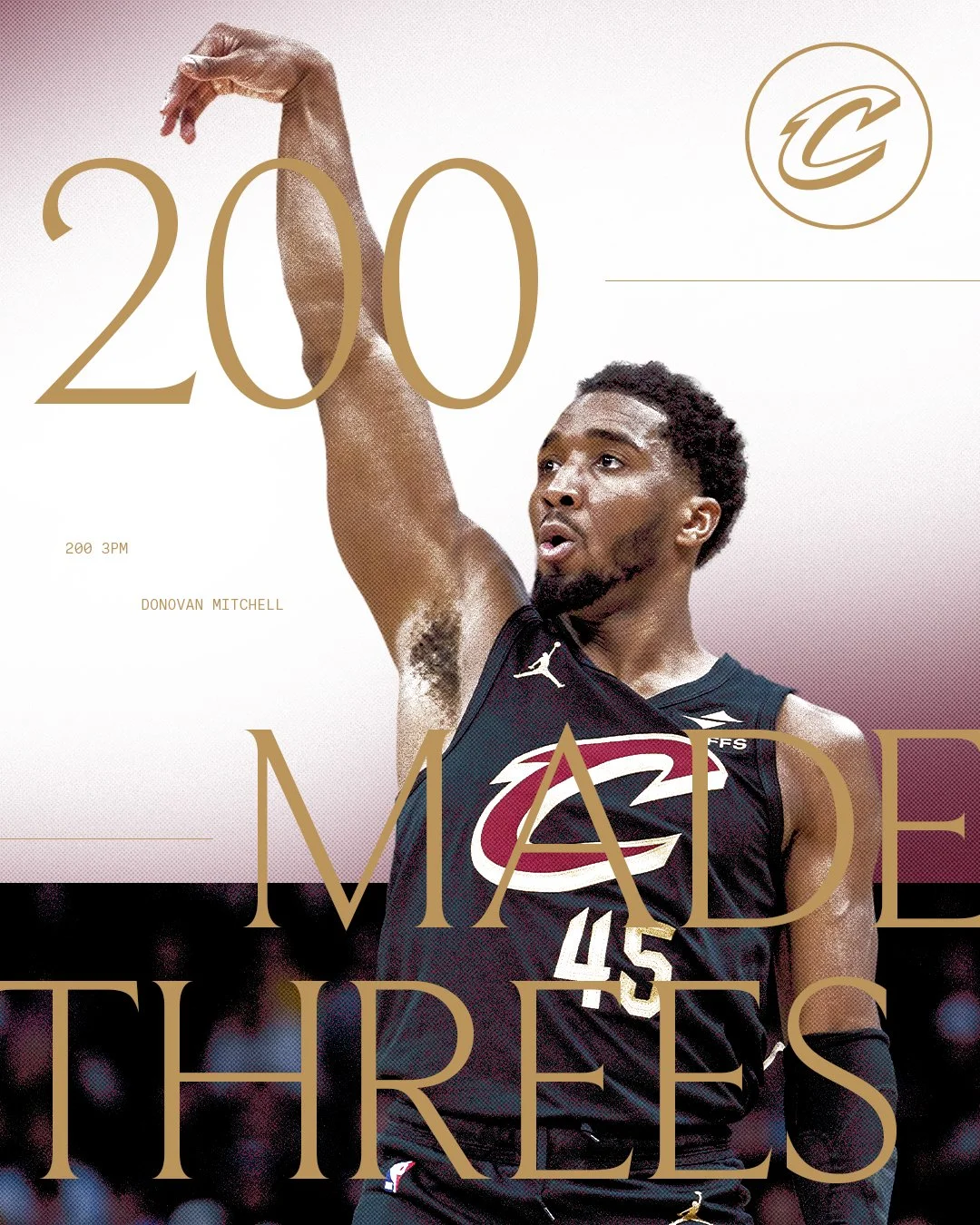 骑士官方更新社媒:“本赛季米切尔已经投进了200记三分球,这是他职业生涯第四次达成这一成就。”