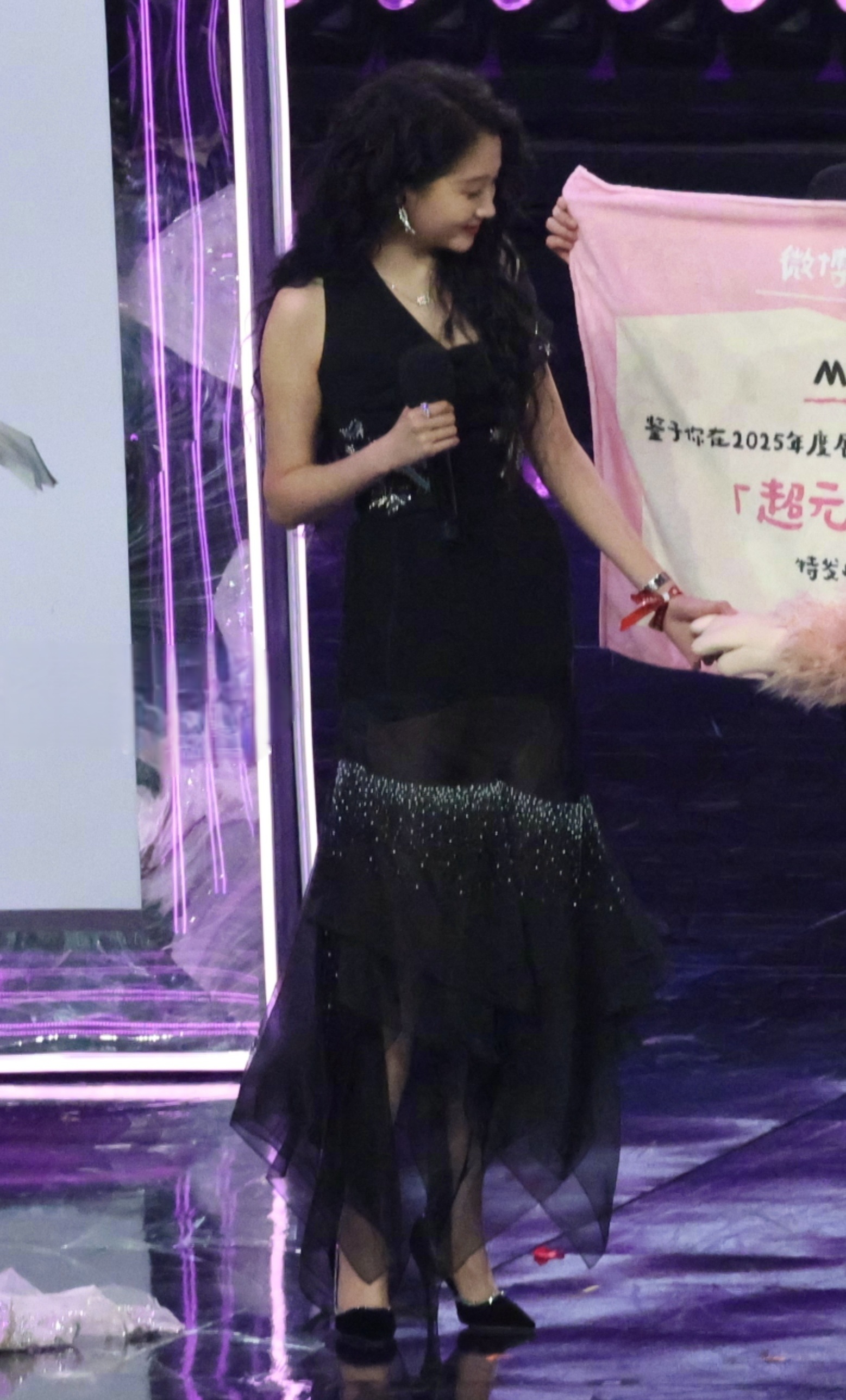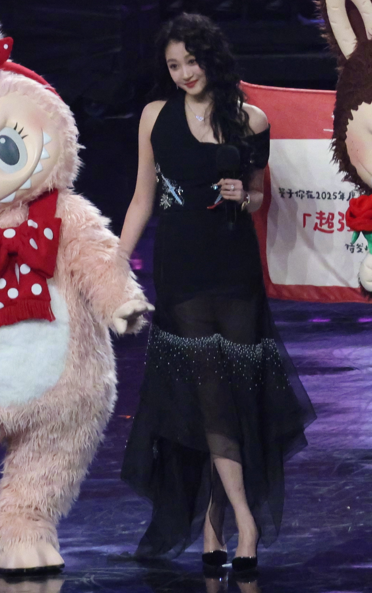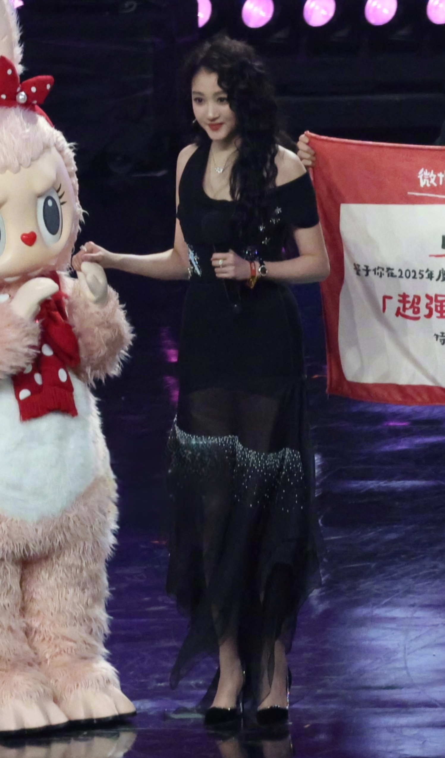 上海F1偶遇关晓彤晓彤黑色星星纱裙黑色高跟鞋