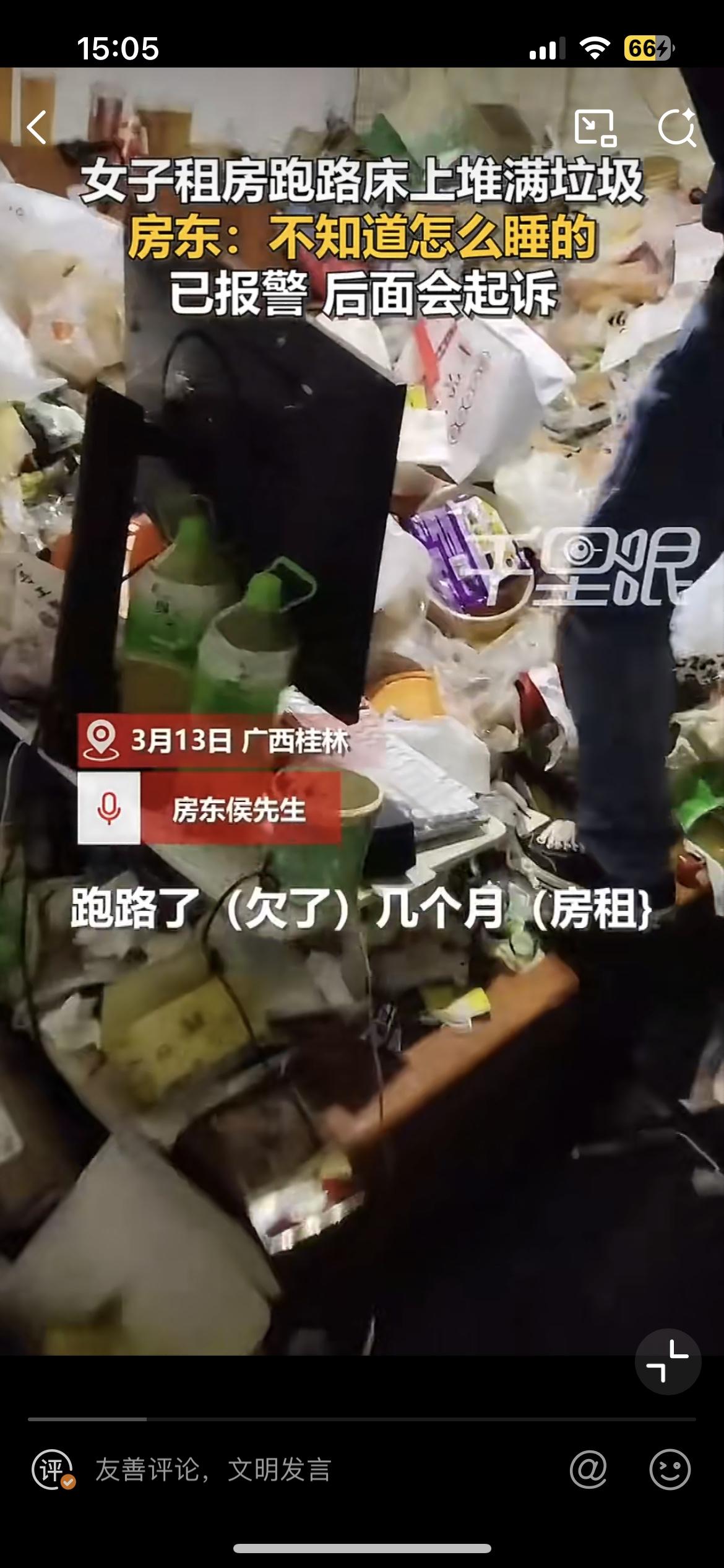 桂林一女主播欠房租跑路,房间垃圾堆成山,房东收房直接崩溃。一名女主播租了房子,因为直播行情不好,欠了几个月房租偷偷跑路,等房东发现时,人已经联系不上了。更让房东愤怒的是,女主播把房间搞得比垃圾站还要脏,里面堆满各种外卖餐盒、生活垃圾。床桌子椅子被损坏,这已经不能用不讲卫生来形容,而是蓄意破坏,报复房东。房东表示目前在找女主播追偿,如果协商不成将考虑起诉赔偿。