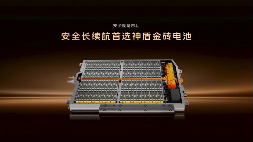 2年多后,金砖神盾电池已经用在吉利旗下各种车型。这次M7放在这里,也花了很大的精力,展示、强调金砖电池的进化。这三年时间,磷铁短刀电池的进化非常明显,金砖也必须跟着进化。