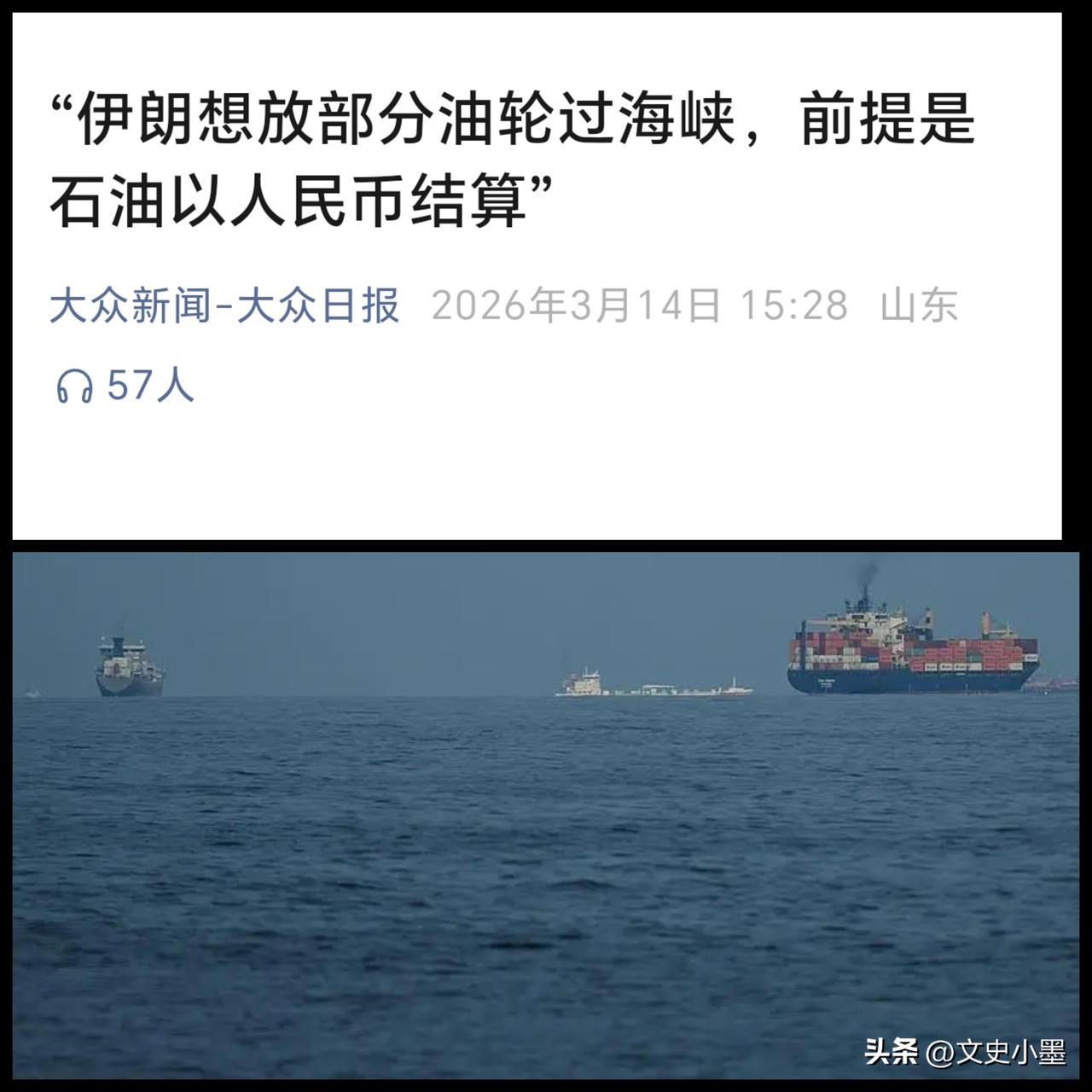 石油以人民币结算! 当地时间3月13日消息,伊朗考虑让有限数量油轮过霍尔木兹海峡,条件是石油以人民币结算。这背后是中东战争让海峡封锁担忧加剧。 目前国际石油贸易基本用美元结算,也就受制裁的俄罗斯石油用卢布或人民币交易。过去几年,中国一直推动用人民币买石油,现在沙特就在努力推进。 虽然美元还是全球主要储备货币,但伊朗这举动意义重大。霍尔木兹海峡可是全球重要原油贸易通道,约五分之一的原油和液化天然气每天都经此运输,伊朗这招或许会让人民币在石油贸易里影响力越来越大。
