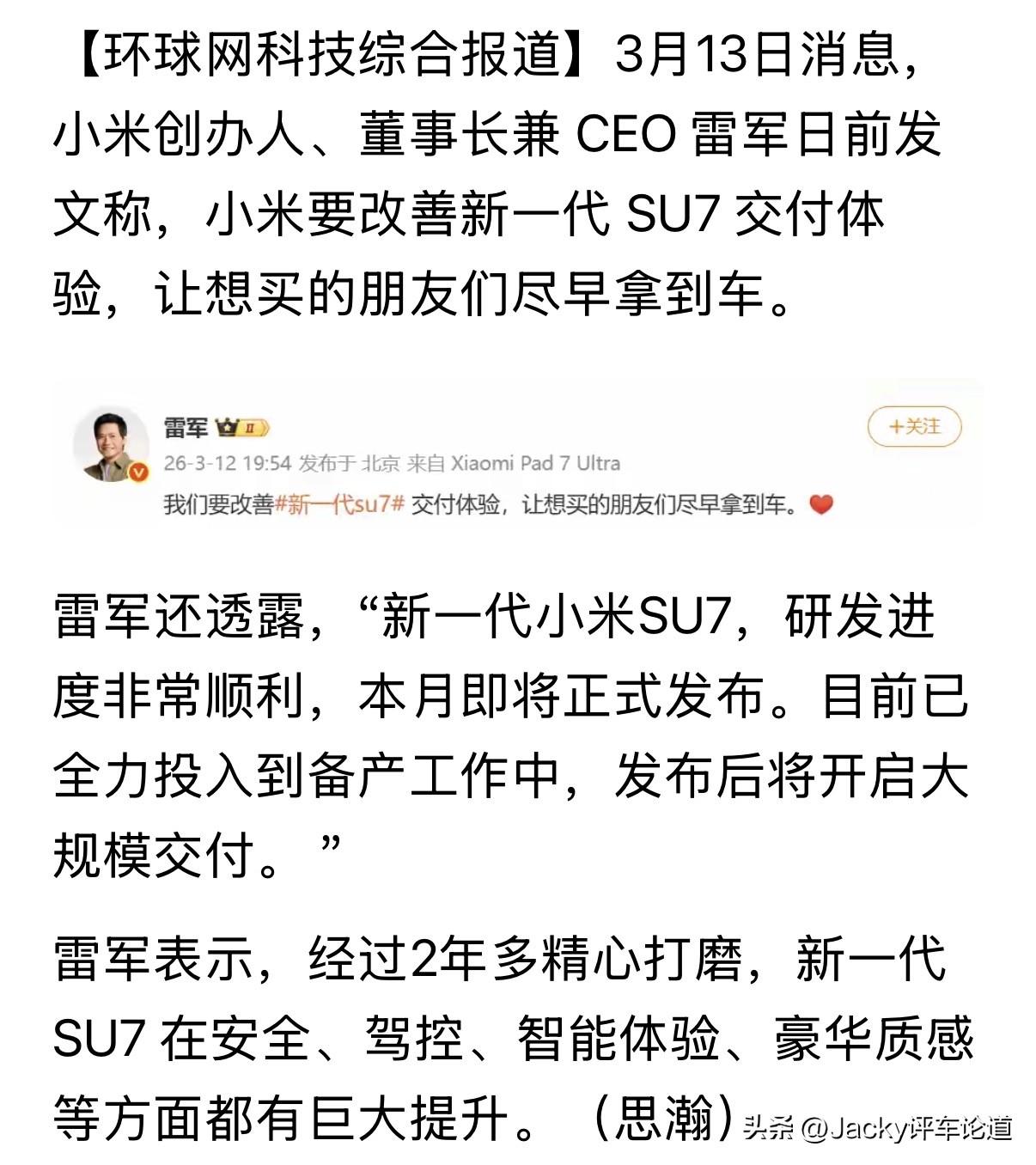 新一代SU7实车,这个月就要上市了,内饰轮毂耳目一新,只是热度已大不如前,主要原因是大家已经有些审美疲劳,加上外观没有大改。正常,很正常,当潮水退去,回归理性,小米也做好了准备让真正需要这款车的不至于等的太久[灵光一闪]