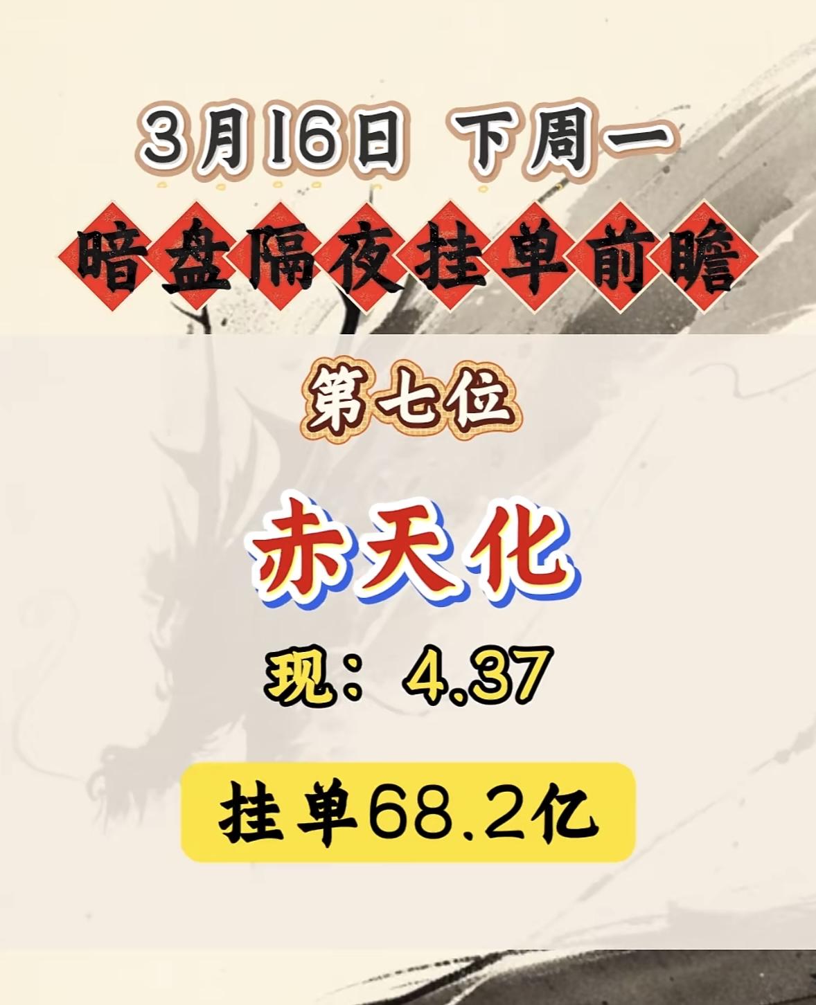 3月16日暗盘隔夜挂单个股揭晓 赤天化这波操作真是太猛了,下周一起暗盘隔夜挂单
