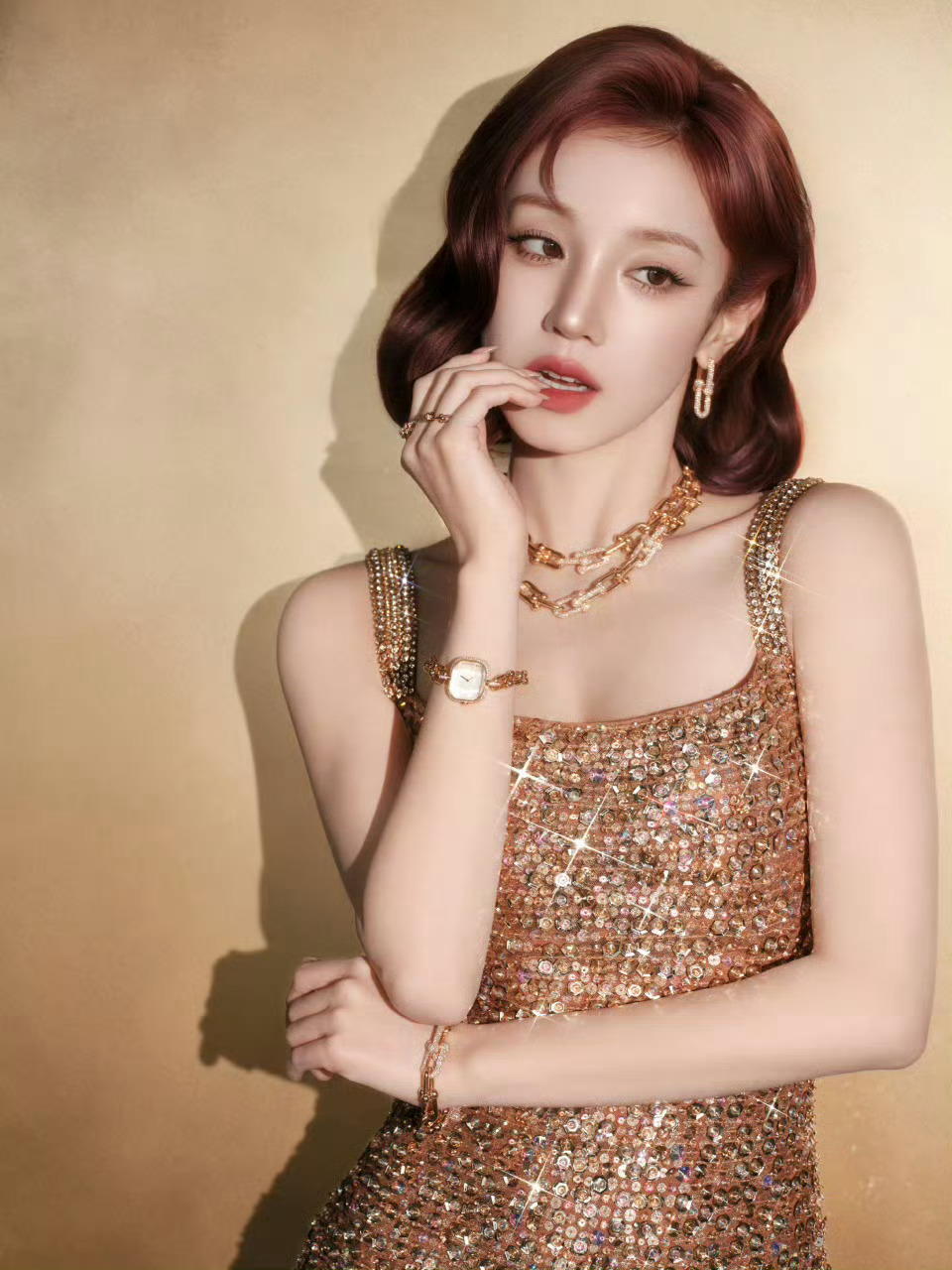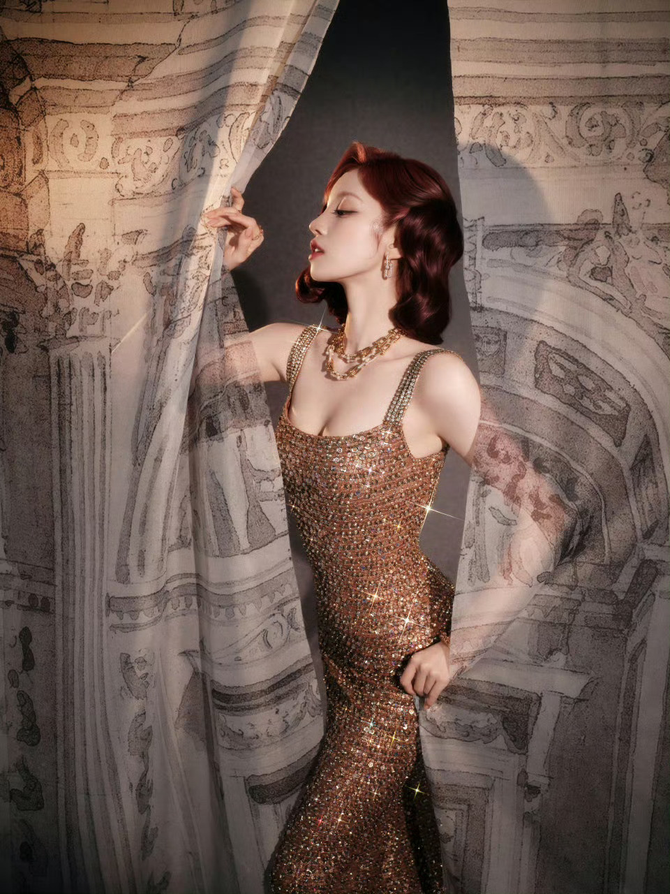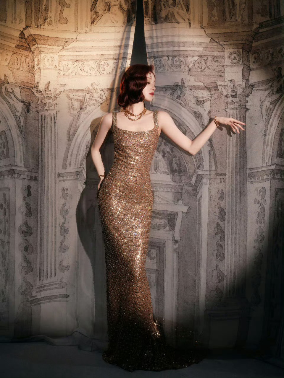 宋雨琦红发金色亮片长裙宋雨琦金色亮片长裙