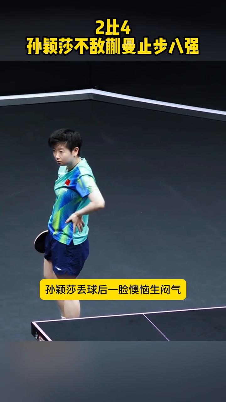 2比4,孙颖莎不敌蒯曼止步八强,最后一局被打出11:2。 注意看,孙颖莎丢球后一脸懊恼生闷气。WTT重庆冠军赛女单1/4决赛,孙颖莎2:4不敌蒯曼,止步八强爆冷出局,最后一局被打出11:2。赛后退场一脸疲惫让人心疼,好好休息,下一场加油。