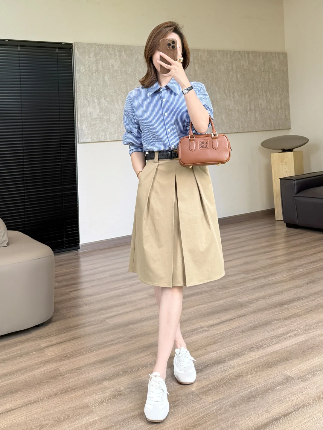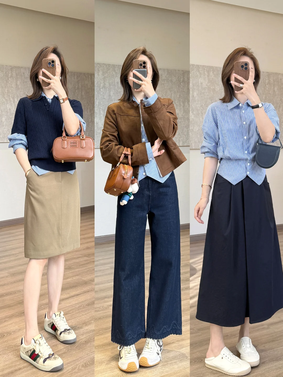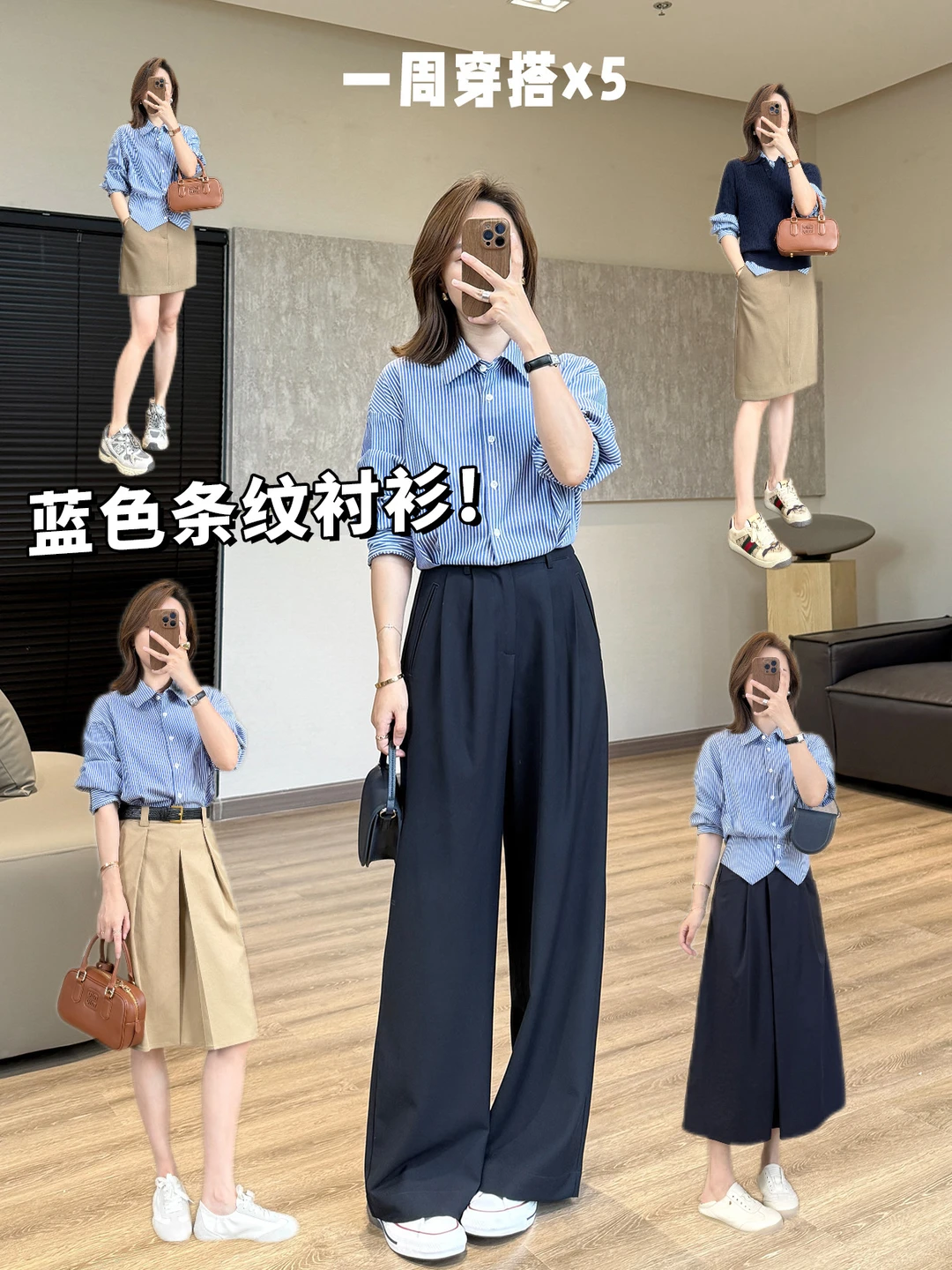 春天就是要穿条纹衬衫 一衣多搭实穿主义! 整理了合集 搭配半身裙 裤子都好看 抄作业!! 158小个子穿搭 梨形身材穿搭 蓝色衬衫叠穿搭配半身裙穿搭 一衣多搭 高级感 气质穿搭 时髦穿搭 显瘦穿搭