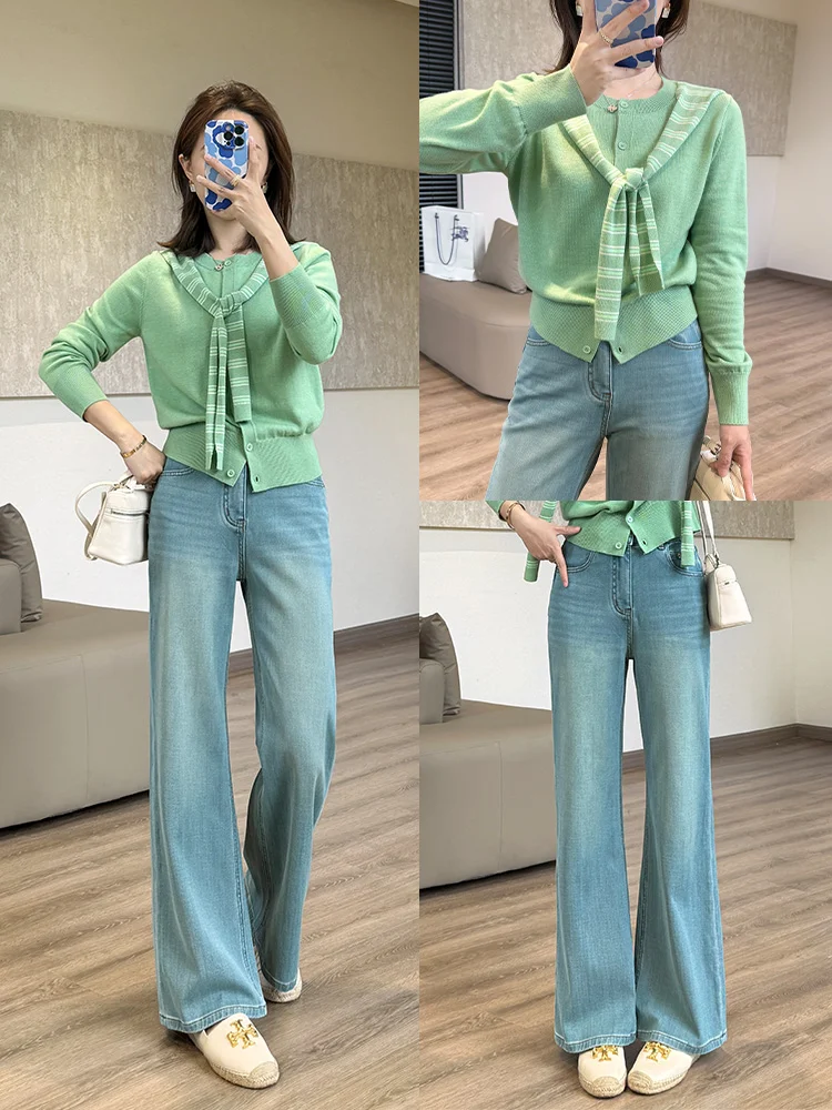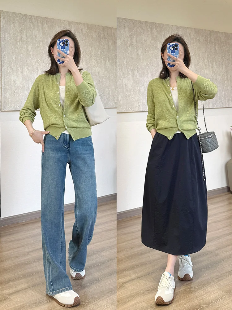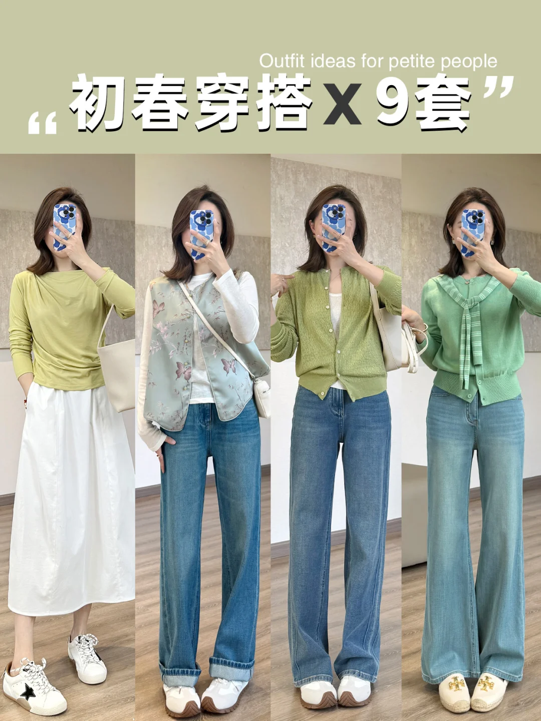 给春天点颜色看看🍐绿色显白第一名!! 搭配牛仔裤 半身裙都好看 气质又温柔又显瘦! 158小个子穿搭 梨形身材穿搭 早春穿搭 绿色系穿搭 针织衫 牛仔裤穿搭 半身裙穿搭 显白的颜色 气质穿搭 通勤穿搭