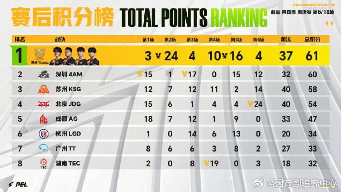 PEL周决热血再燃周决赛首日结束后整体格局更加胶着📊,队伍之间的分差非常小,