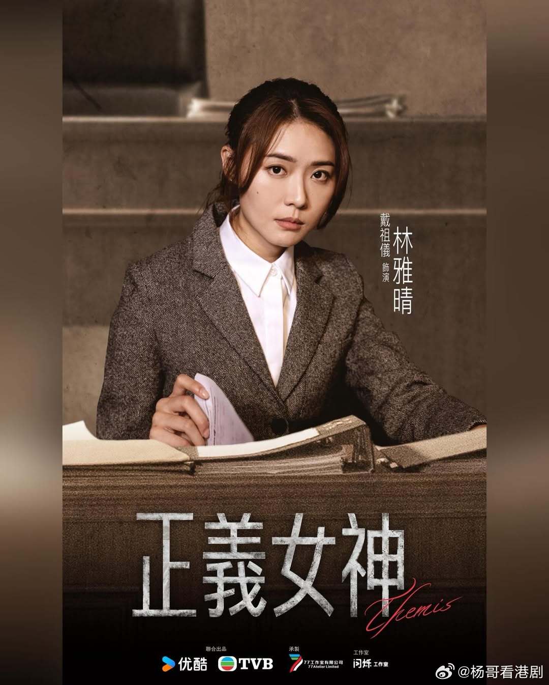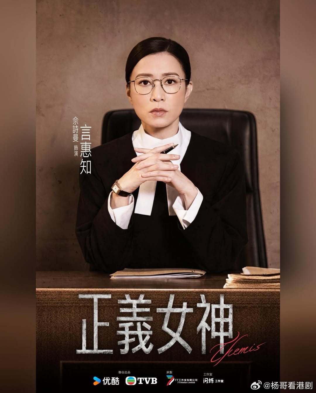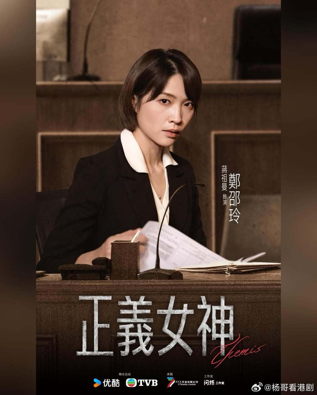 《正義女神》角色海報(繁).附演員角色對應:佘詩曼 飾 言惠知譚耀文 飾 邱光正 陳煒 飾 高淑樺 周嘉洛 飾 鄭邵文 許紹雄 飾 洪思義馬貫東 飾 程睿燊蔣祖曼 飾 鄭邵玲戴祖儀 飾 林雅晴黃庭鋒 飾 何偉迪