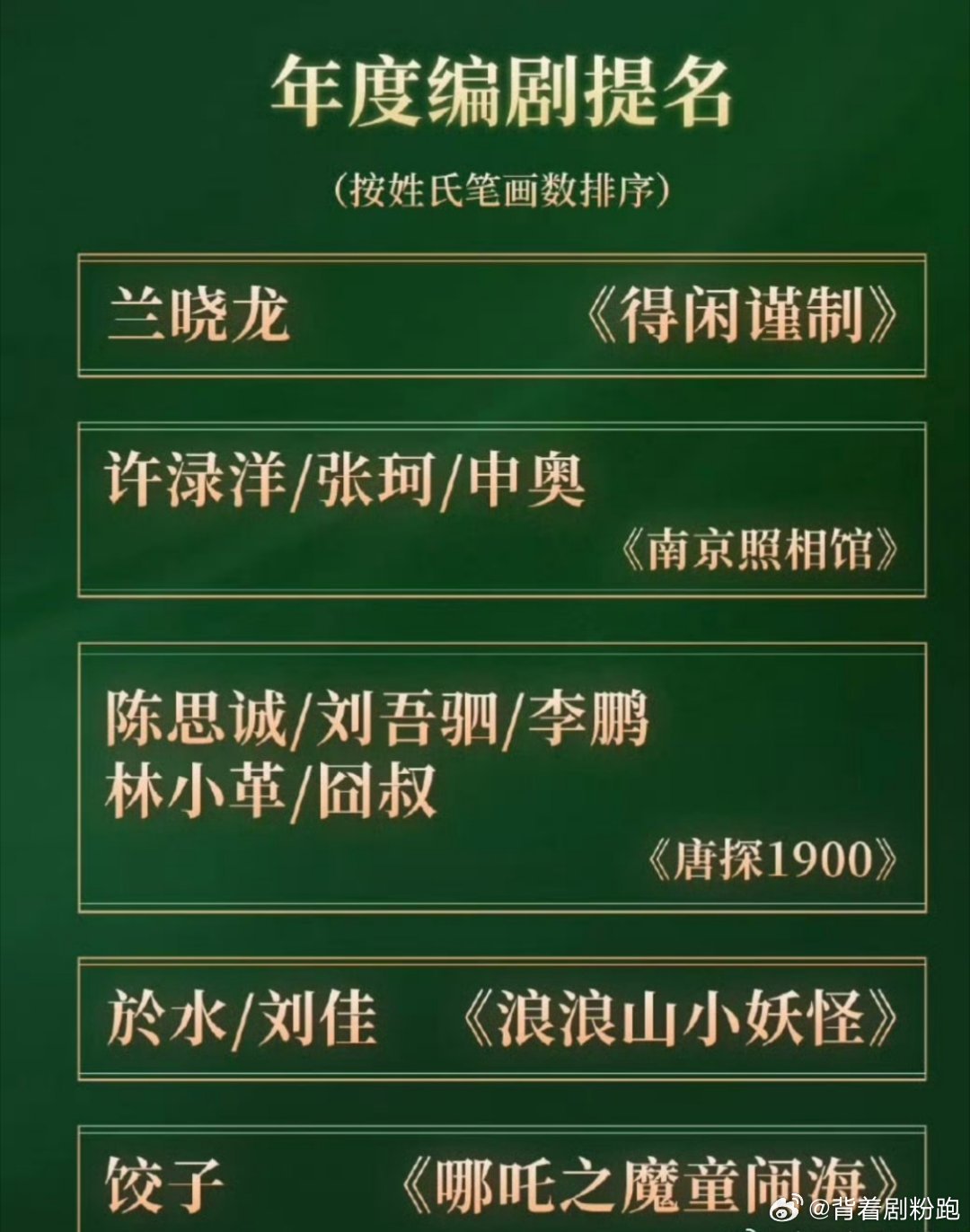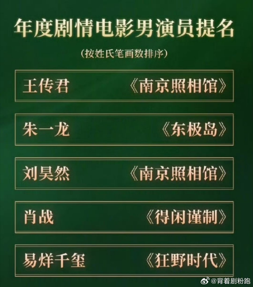 年度剧情电影男演员提名:肖战 年度剧情电影提名:《得闲谨制》年度编剧:兰晓龙