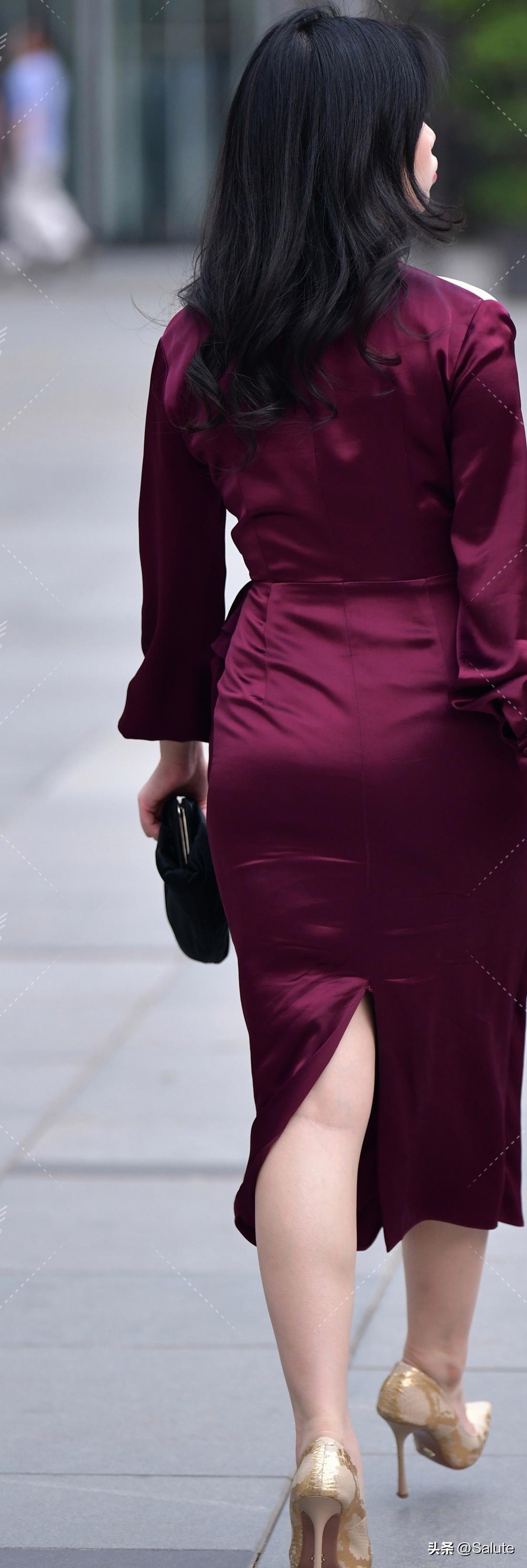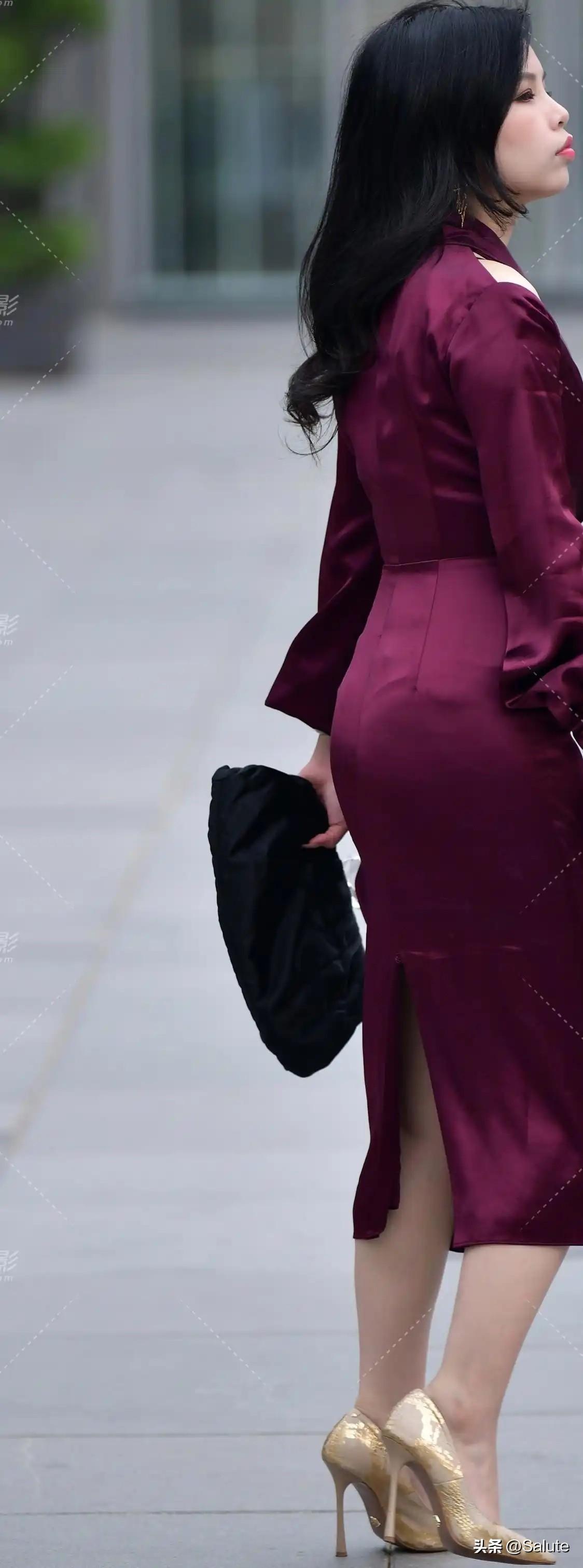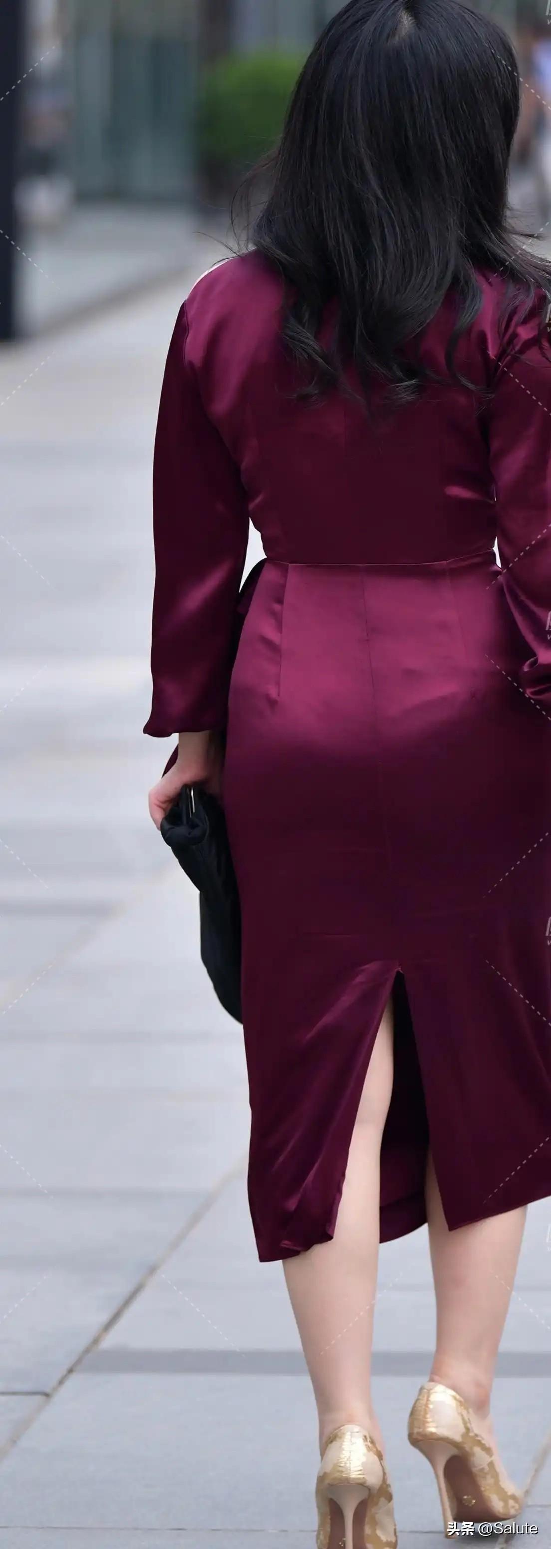 优雅红裙,自信步伐,都市女郎风范