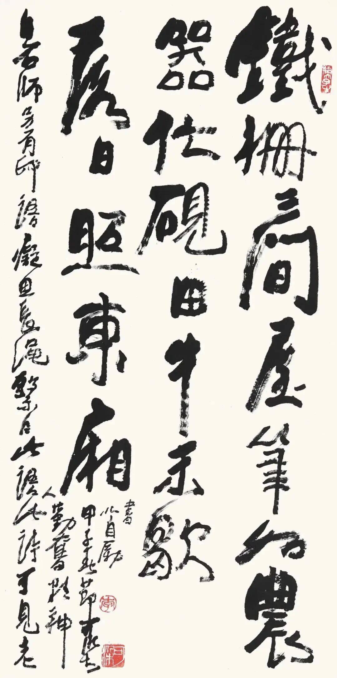 李可染的字其实并不能站在书法的角度去看,因为他的主要成就是画,画家字大多带着点涂涂抹抹的习惯,美感也有,但是缺乏书法的节奏感,书写性不强。这也是近代画家与古代画家的不同之处,古代的画和书法都讲究“写”,所谓书画同源。苏东坡是大画家吧,人家的书法同样是一流的。