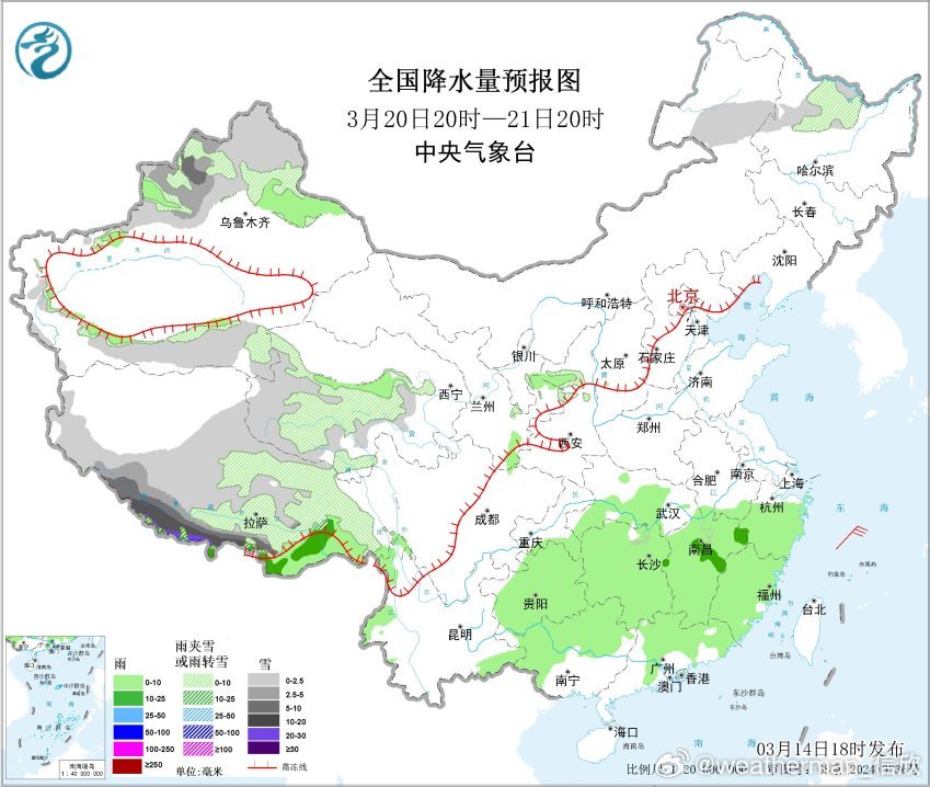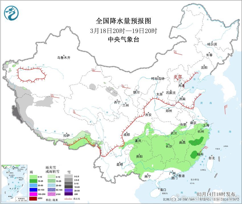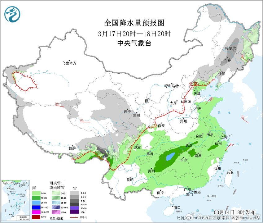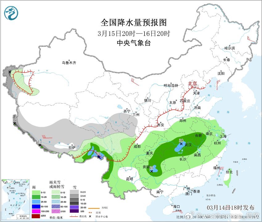15-17日中到大雨的区域还相对偏北一些,主要在长江沿线或北侧。18日略有南下,19-21日降雨主要在江南。从过往统计看,湖北湖南江西等地,通常降水日数最多的月份就是3月。此时容易出现连续的春雨。另外未来3天高原地区还有降雪,西藏南部山区可能有大雪甚至暴雪。此外,17日晚-18日冷锋过境东北时,也有降雪。