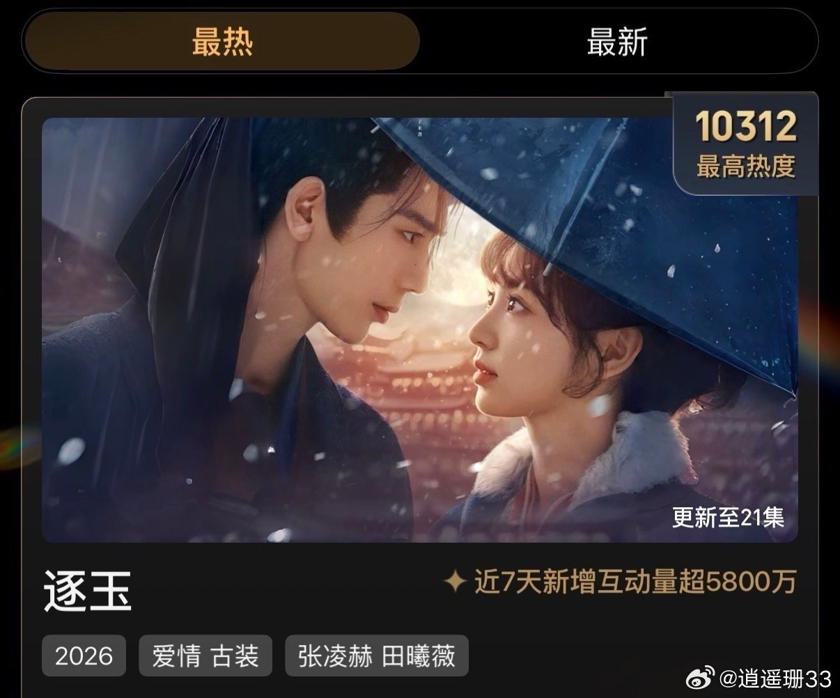 逐玉热度超过宁安如梦 张凌赫又双叒刷新自己记录了!《逐玉》热度超越《宁安如梦》,男主剧成绩再攀新高。从谢危到谢征,每一部都在进步,用角色和实绩说话的演员真的太酷了。