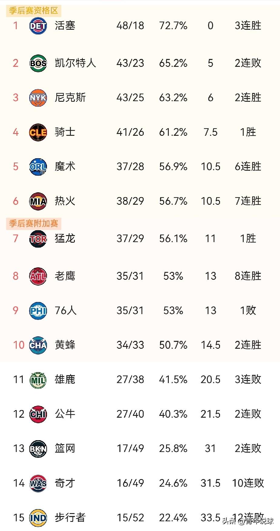 本赛季东西部的前10支球队已经确定了,无非就是部分排名还未最终确定,尤其是西部,第3-7之间的排名竞争太激烈了!