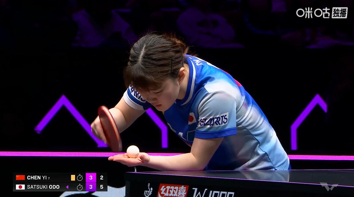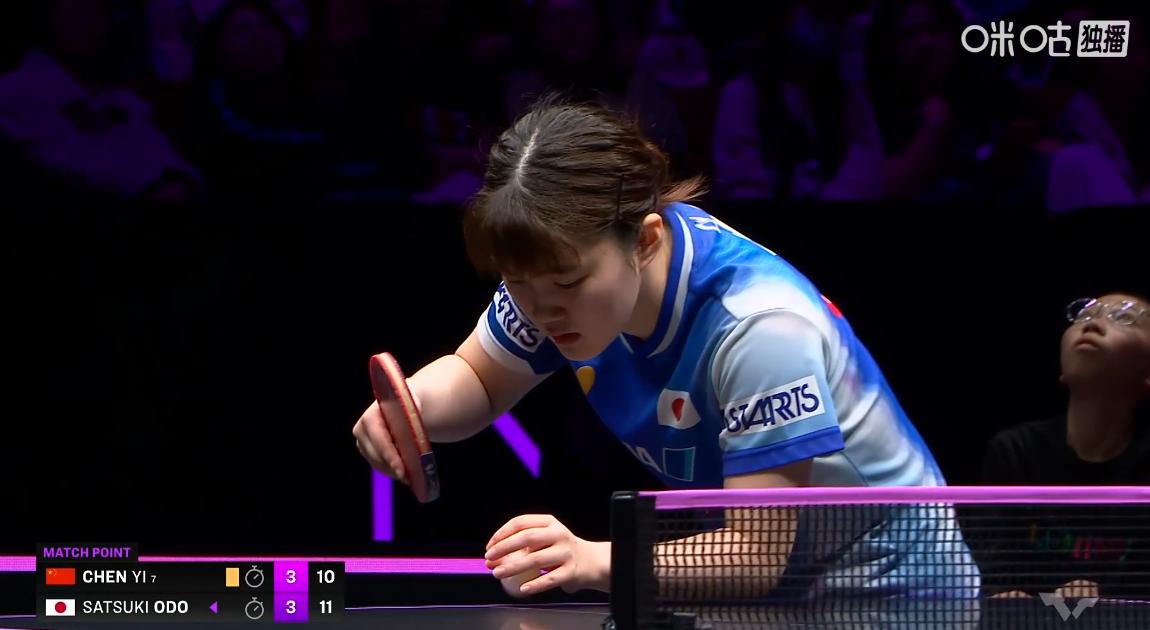 陈熠又开始乱打了,看来要输球, 决胜局被打了一个4:0, 刚刚打出来的战术优势又给忘了, 陈熠危险了, 5:0,大藤沙月大比分领先, 陈熠的状态有点不对, 完全兴奋不起来, 整个人是懵的状态, 陈熠连拿2分, 大藤果断叫暂停了, 如果陈熠在大藤沙月拉伤的情况下输球, 那真是太遗憾了, 5:3,陈熠的发球轮, 还是发短球,为什么不继续打长球呢, 侯英超彻底无语了, 7:3,大藤沙月大比分领先, 陈熠赢球后都不喊了, 把侯英超和周泽昊给急的, 陈熠在反手上连续加质量, 将比分追到7:7平, 陈熠今天的发球质量太差了, 大藤沙月接发球拧拉, 9:9打平, 大藤沙月底线长球直接得分, 10:10打平, 关键球上陈熠手软了, 12:10,大藤沙月锁定胜局