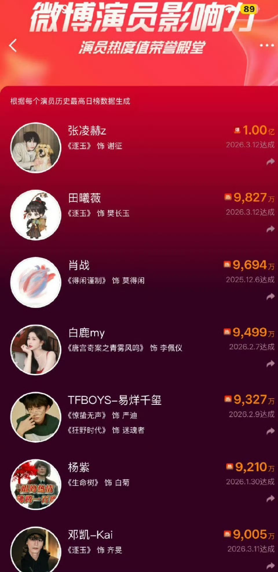 张凌赫,田曦薇主演的逐玉播出后,微博个人热度榜第一和第二了