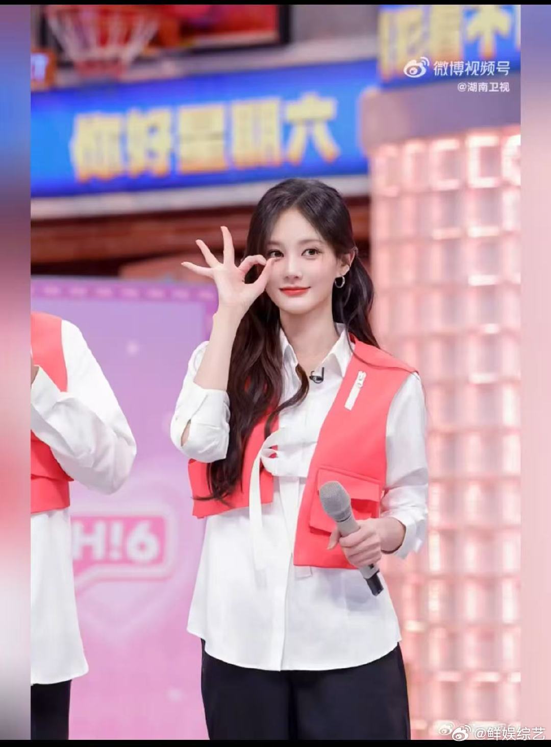 刘亦菲这条裤子挺养生,毕竟降温了肚脐眼必须护住啊