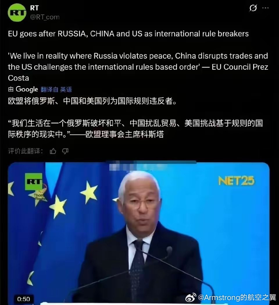 这才是翻译的最高境界,这才是是欧盟的心里话!欧盟理事会主席科斯:“我们生活在
