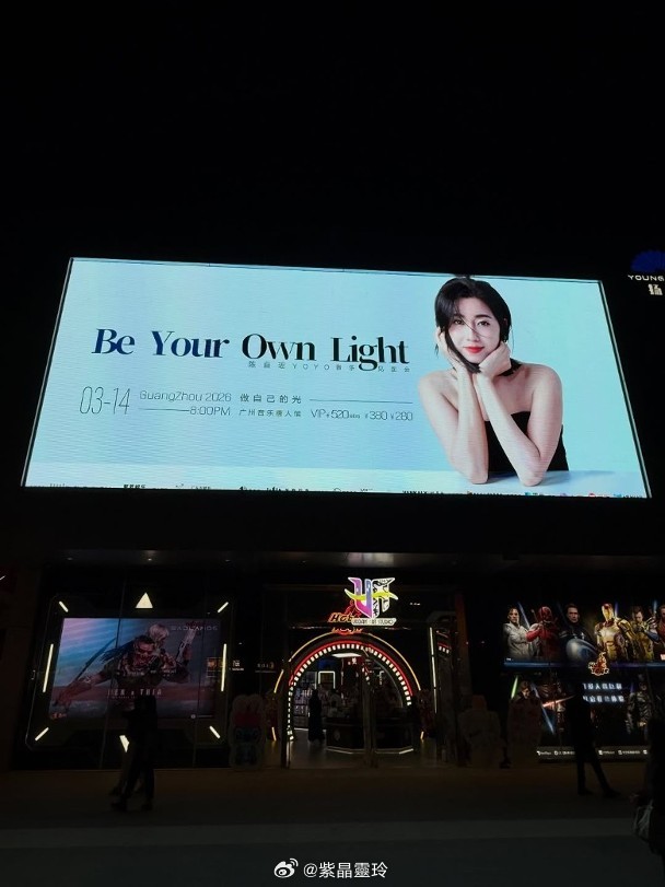 陳自瑤(Yoyo)近年轉戰內地積極發展事業,更發展直播帶貨事業成為帶貨女王,人氣高踞不下。早前,她率先宣布將於3月到廣州舉行首個音樂見面會,她已正式抵達當地等備,在社交平台分享在當地的大型廣告片合照,表示:「同自己打卡,見到好大個廣告牌的自己,好開心,為自己打打氣!明天good show !各位明天見!做自己的光、音樂見面會、廣州。」網友大讚她狀態極佳,散發出陣陣少女味。好友連詩雅留言:「Good show tomorrow bbbbbb」。