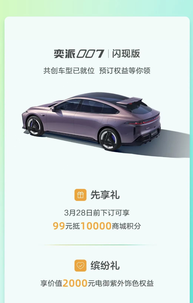 奕家人的春日派对 东风奕派正式官宣「奕家人」IP,五大服务承诺+各种权益,还有官方认证的车友会。同时三款新车亮相,各有升级,满足不同出行需求。奕派008上新“极光红”车色和“春野套件”,是东风奕派和用户联合开发的;奕派007闪现版官宣3月28日正式上市,属于官方改装定制车型,现在预定已开启,有先享礼+缤纷礼;纳米01Cross也同期首发,推出“苍山灰”全新车身颜色。后续东风奕派还会推出大六座SUV、超舒适大空间SUV、高性能轿跑等多款新车。