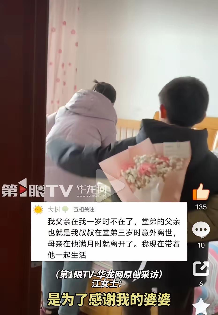 这是一个非常感人的故事,展现了亲情、责任与爱的力量,特别是在没有血缘关系的家庭成员之间。 简要梳理故事重点: 江姐从小失去父亲,靠叔叔的照顾长大,叔叔对她视如亲生女儿。 叔叔去世后,留下3岁的堂弟孤苦无依,母亲早在堂弟满月时已离开。 江姐不忍堂弟受苦,承担起照顾堂弟的责任,姐弟相依为命。 江姐结婚时担心婆家难接受堂弟,主动向婆婆坦白。 婆婆大度善良,表示接纳堂弟,把他当作自家孩子,热情照顾。 多年相处,婆婆对堂弟呵护备至,堂弟懂事勤快,感恩婆婆。 三八妇女节当天,堂弟用自己攒的钱买花和贺卡送给婆婆,称呼她“妈妈”,让婆婆感动落泪。 江姐看到这一幕也很感动,确认当初的决定是正确的。 这个故事体现了几个重要主题: 亲情的多样性:不仅限于血缘,真心与责任可以建立起亲人般的关系。 责任与担当:江姐对堂弟的照顾是由感恩和责任驱动的,也是她坚持的核心动力。 包容与善良:婆婆的接纳与爱使得这个不完美的家庭变得完整和温暖。 感恩与回报:堂弟以实际行动表达对婆婆的感激,展现积极正面的品德。 如果你需要,我可以帮你: 将这个故事整理成微信公众号推文,吸引读者共鸣。 写一篇感悟随笔,谈这个故事的启示意义。 做成温馨的短文戏剧或视频文案。 或者总结故事中的人生道理,作为励志素材。 请告诉我你的具体需求!步入社会看重的是能力还是学历 你如何处理婚姻中的背叛和伤害?