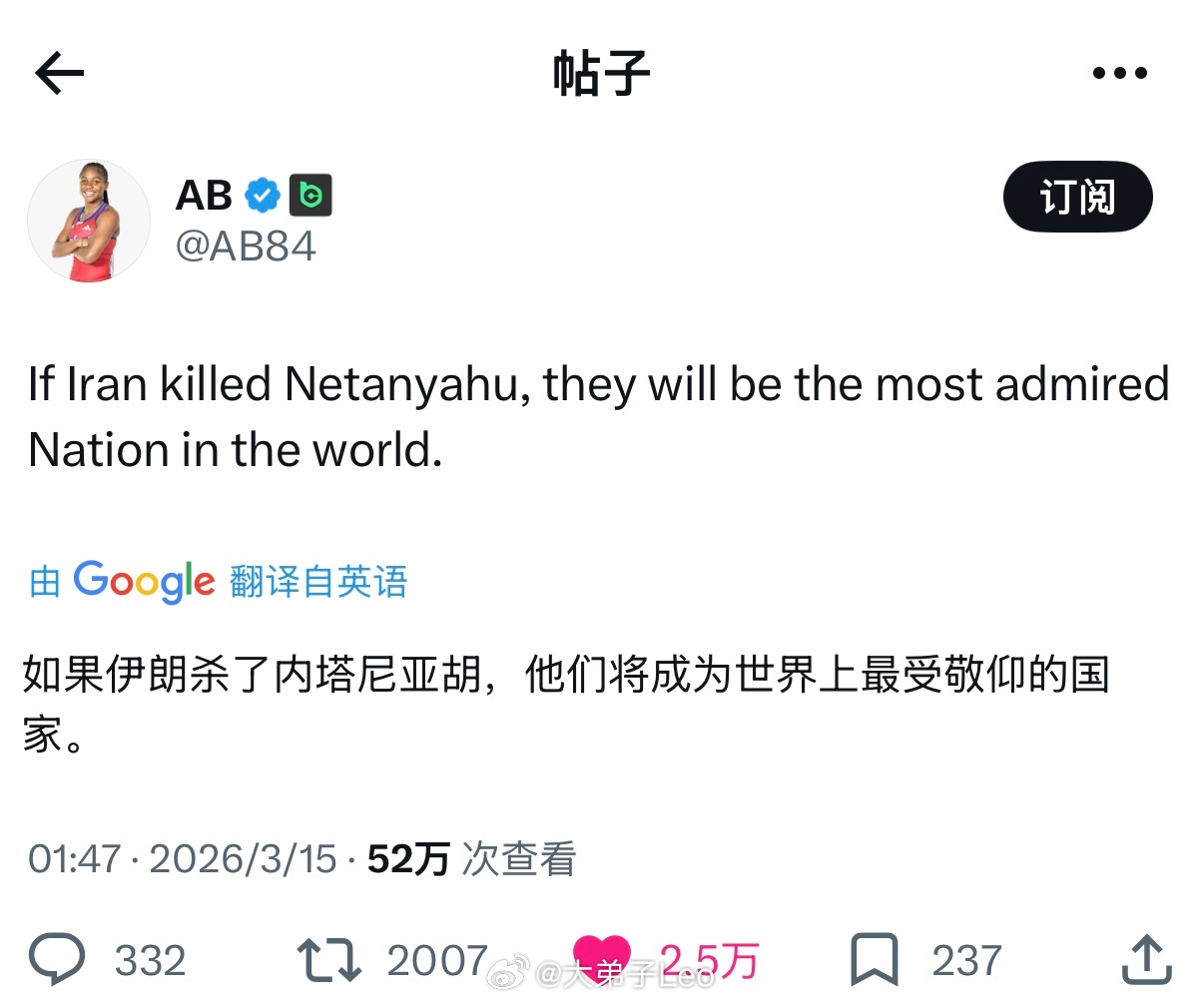 X上一位大V发了一段话,“如果伊朗杀了内塔尼亚胡,他们将成为世界上最受敬仰的国家