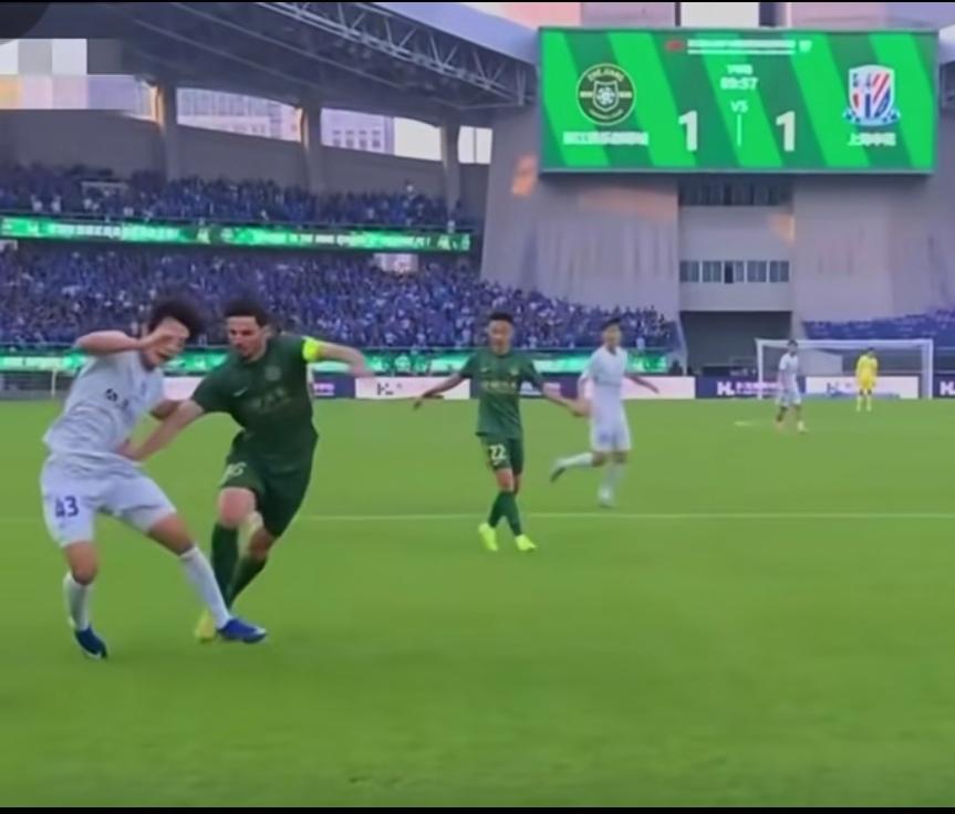 申花球迷不服!这个球为何没有给点球?而海港曾经在河南武磊禁区内摔倒却判罚点球了!这是昨天申花与浙江比赛终场前,对手把申花球员放倒了!裁判竟然不予理会!申花球迷坐不住了!这样的犯规竟然还不吹点球!申花非常遗憾的失去了2分!