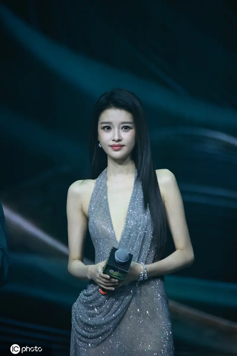孙怡亮相杭州草本初色活动 银色深V钻石裙性感闪耀
