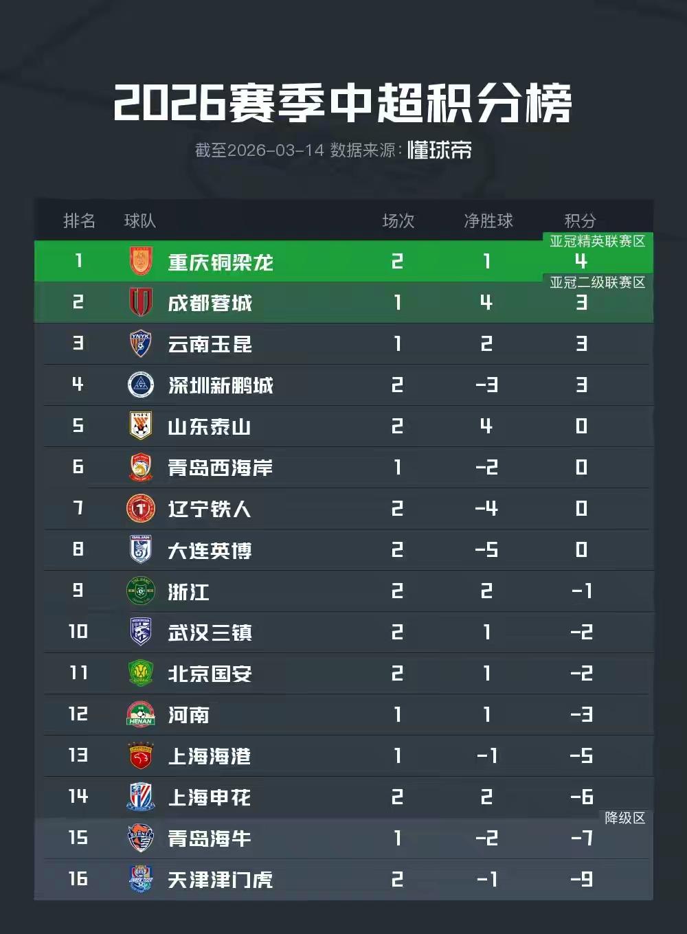 恐怖熟悉的山东泰山又回来啦!山东泰山2连胜负分清0,成功从水下率先上岸,成为罚分俱乐部首位“破冰者”,谢文能状态火爆,2场比赛进2球,克雷桑一锤定音绝杀国安,2人成为泰山破冰功臣,山东泰山重回前五,这就是老牌劲旅的底蕴,韩鹏大帅运筹帷幄,决胜千里,2026新赛季泰山阵容强劲,老中青人才济济,2场比赛回归第一集团,让人久违的泰山回来啦!山东泰山己成中超争冠最大热门,让我们拭目以待吧!