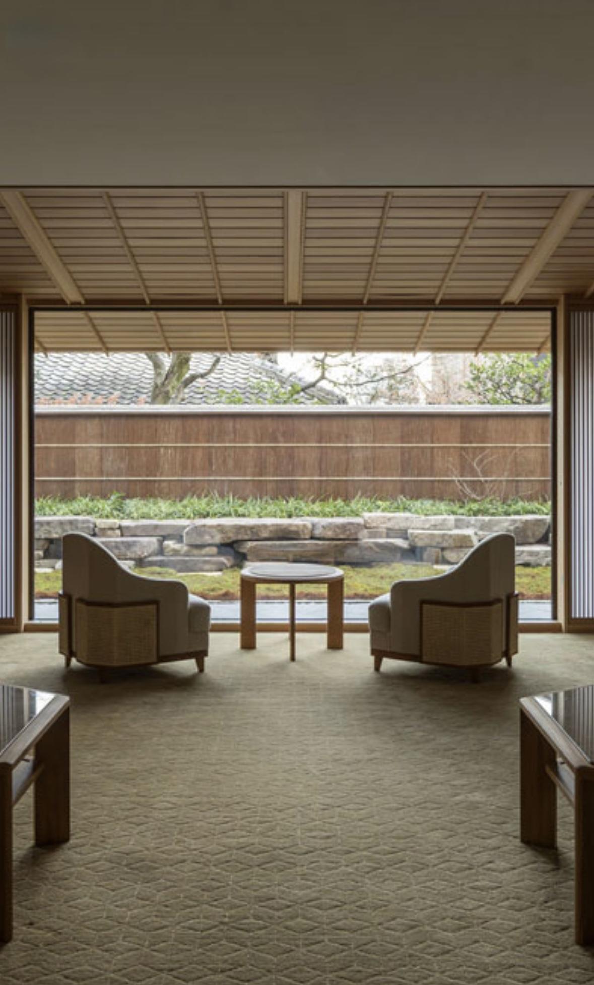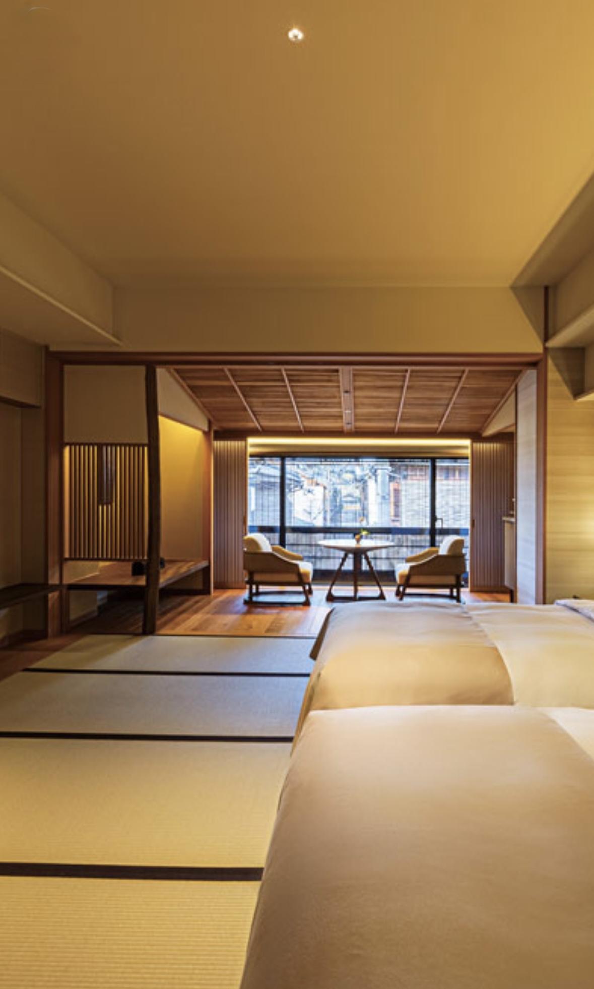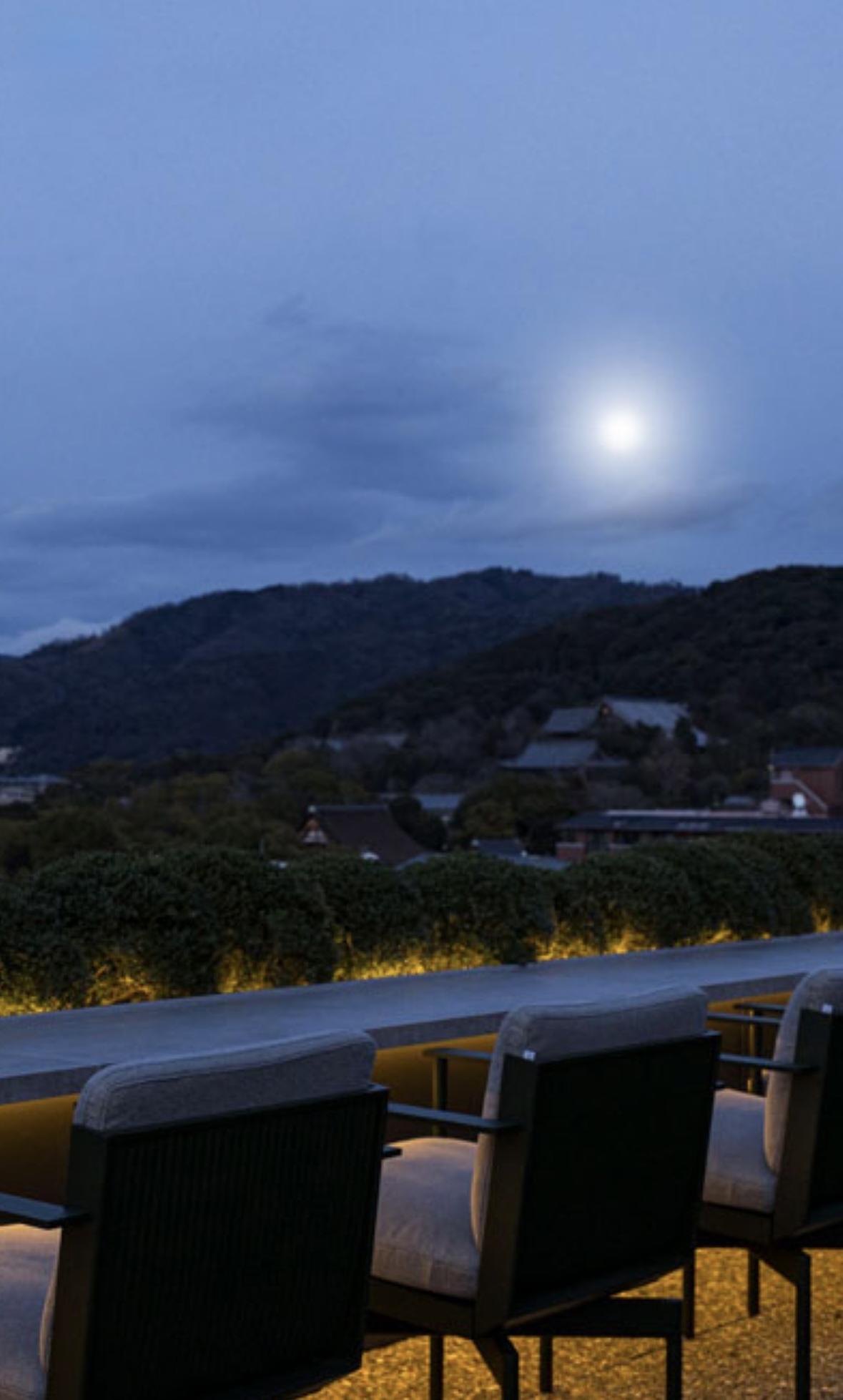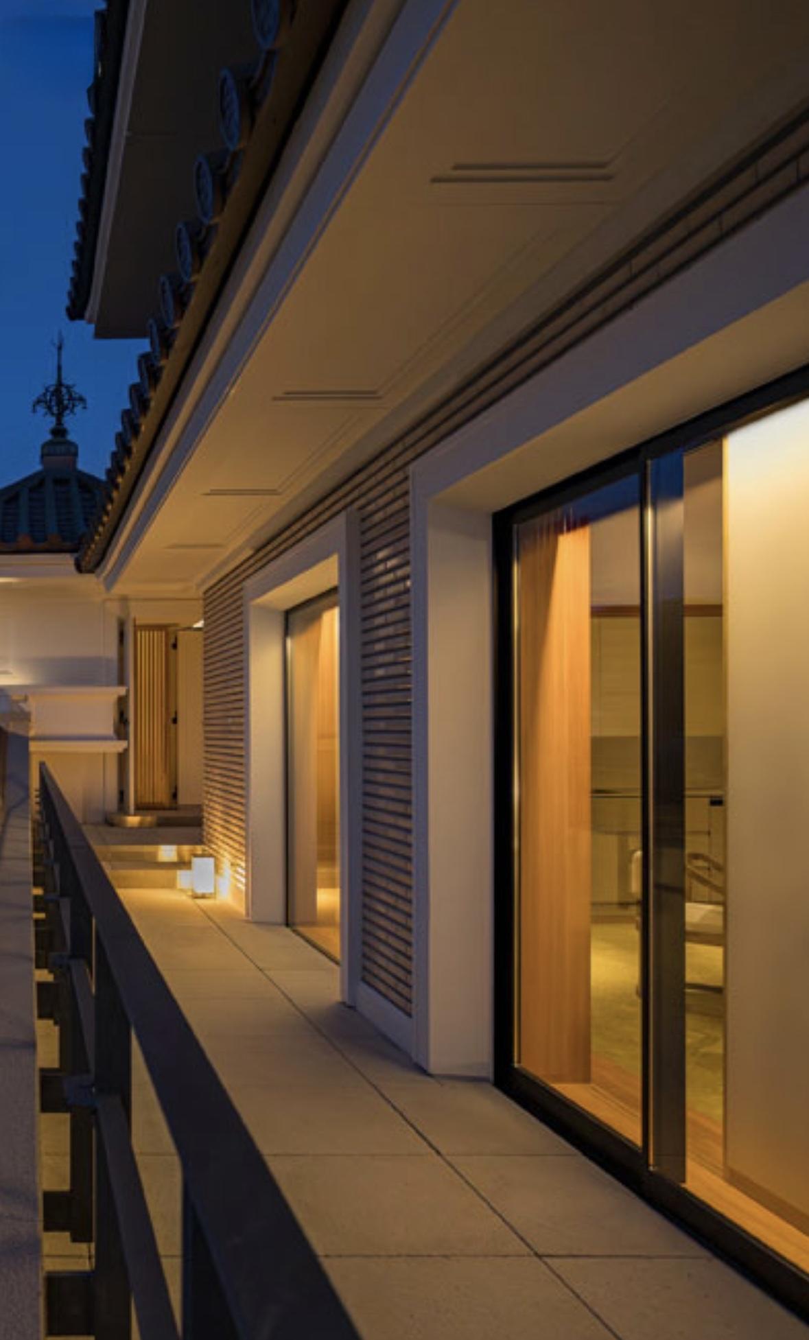 京都祇園帝国酒店,每晚300万日元的顶级房间128平方米,露台65平方米。露台上,可以远眺成排的瓦顶、城市景观和绵延的山脊。夜晚,商店前的红灯笼亮起……