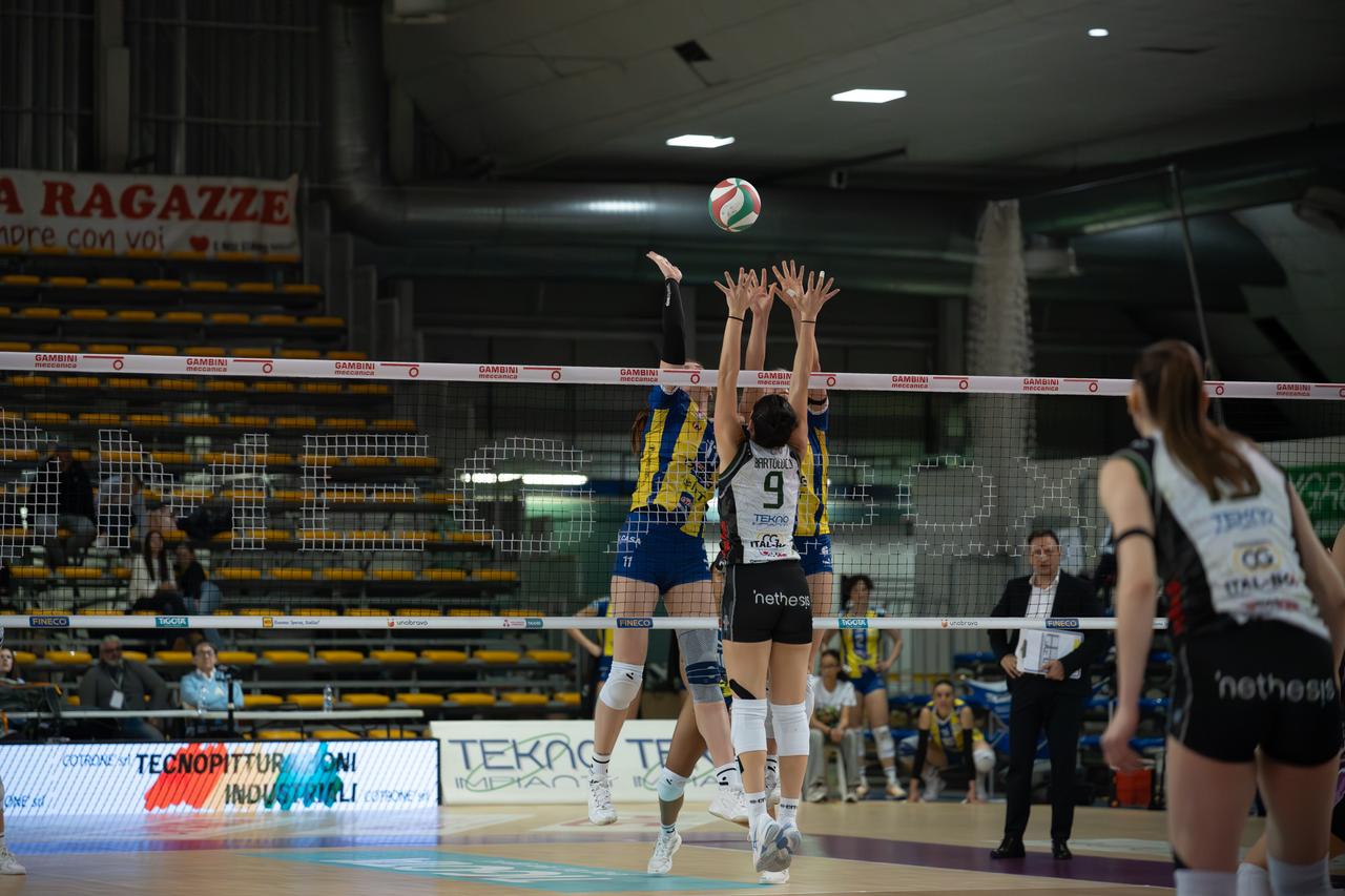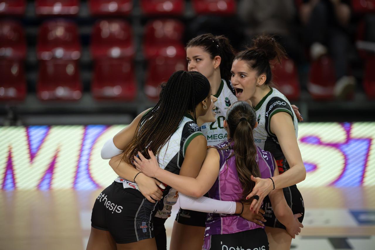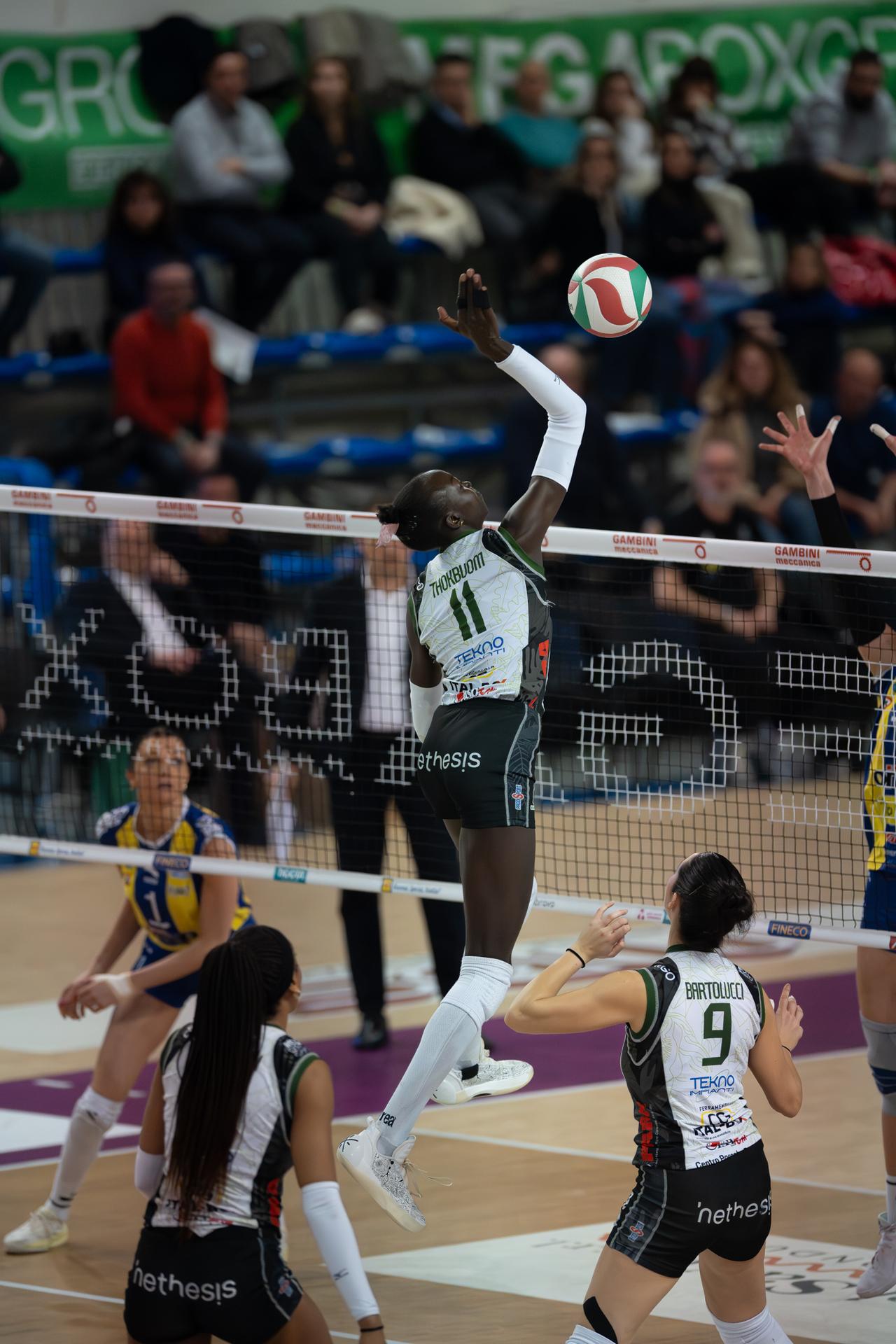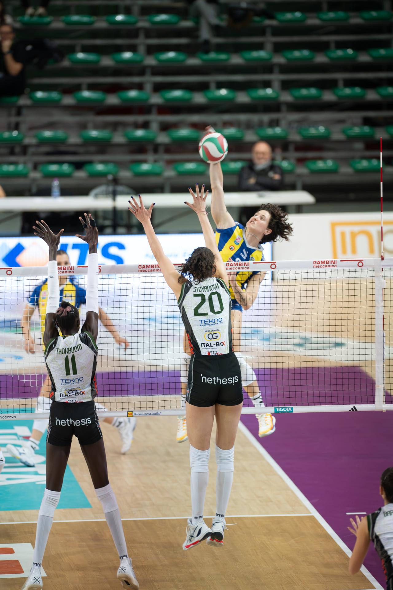 庄宇珊离队,圣乔瓦尼再创新高 2025-2026意甲女排季后赛挑战赛(欧挑杯附加赛)第二轮,B组的圣乔瓦尼在主二传德国外援斯特劳贝和庄宇珊相继离队、经历短暂震荡后,重整旗鼓、再创新高,在客场3-1挑落季后赛八强之一、在常规赛两次零封自己的瓦莱福利亚,四局比分25-20, 27-25, 22-25, 25-22,俄罗斯副攻科丘里那12扣4拦1发17分、85%&85%的进攻双率再次获得MVP。 瓦莱福利亚: 布蒂甘24扣13中1失3被拦、5拦0发18分 托克布姆14扣8中0失0被拦、2拦2发12分 翁古雷亚努24扣12中2失2被拦、0拦0发12分 卡莱蒂30扣8中4失3被拦、2拦0发10分 斯托亚诺娃33扣6中3失5被拦、2拦2发10分 奥默鲁伊12扣4中1失1被拦、0拦0发4分 巴特卢奇2扣1中0失1被拦、0拦0发1分 圣乔瓦尼: 科丘里那14扣12中0失0被拦、4拦1发17分 卡鲁索8扣4中0失1被拦、2拦2发8分 布拉奇16扣7中4失2被拦、1拦0发8分 纳尔多26扣5中2失4被拦、2拦1发8分 布兰彻尔18扣7中4失2被拦、0拦0发7分 尼科利尼4扣2中0失0被拦、3拦1发6分 奥托拉尼21扣6中1失2被拦、0拦0发6分 皮奥维桑16扣3中2失0被拦、1拦0发4分 威尔逊6扣1中0失0被拦场、2拦0发3分 瓦莱福利亚-圣乔瓦尼: 进攻得分:52-47 拦网得分:11-15 发球得分:4-5 对方送分:25-32 总得分:92-99 一传到位率:57%-58% 一传完美率:26%-22%