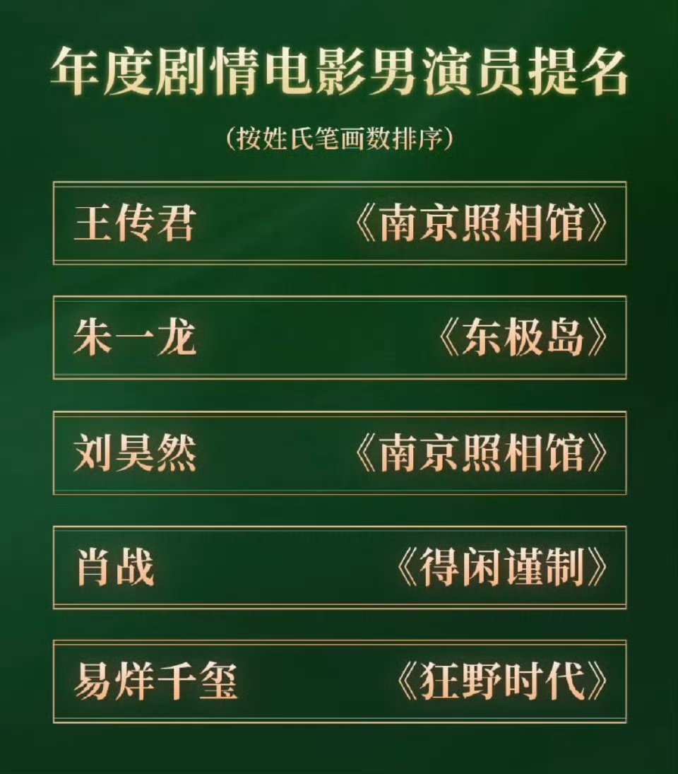 恭喜刘昊然提名CMG中国电影盛典年度剧情电影男演员,近期的第二个奖项提名恭喜