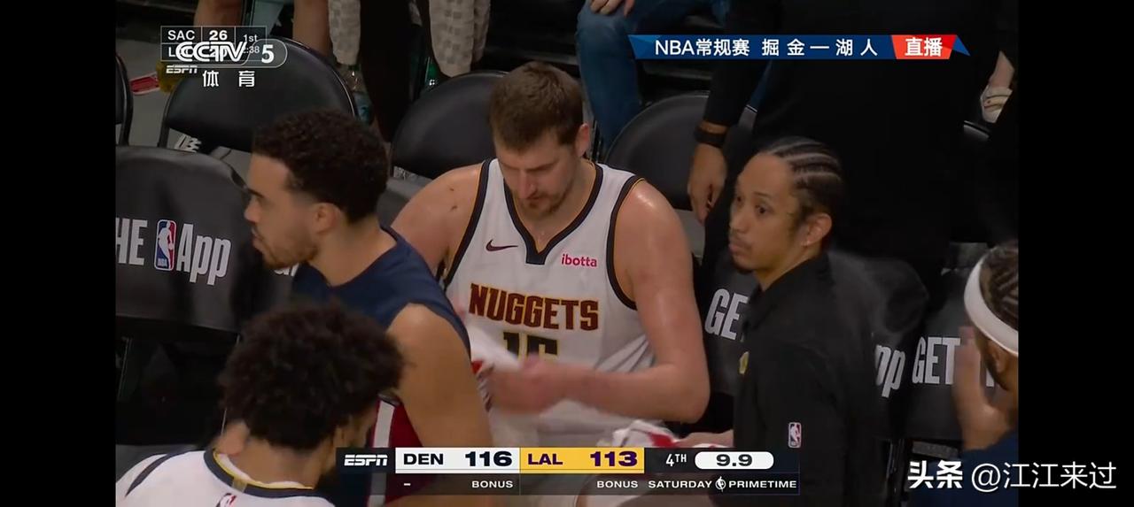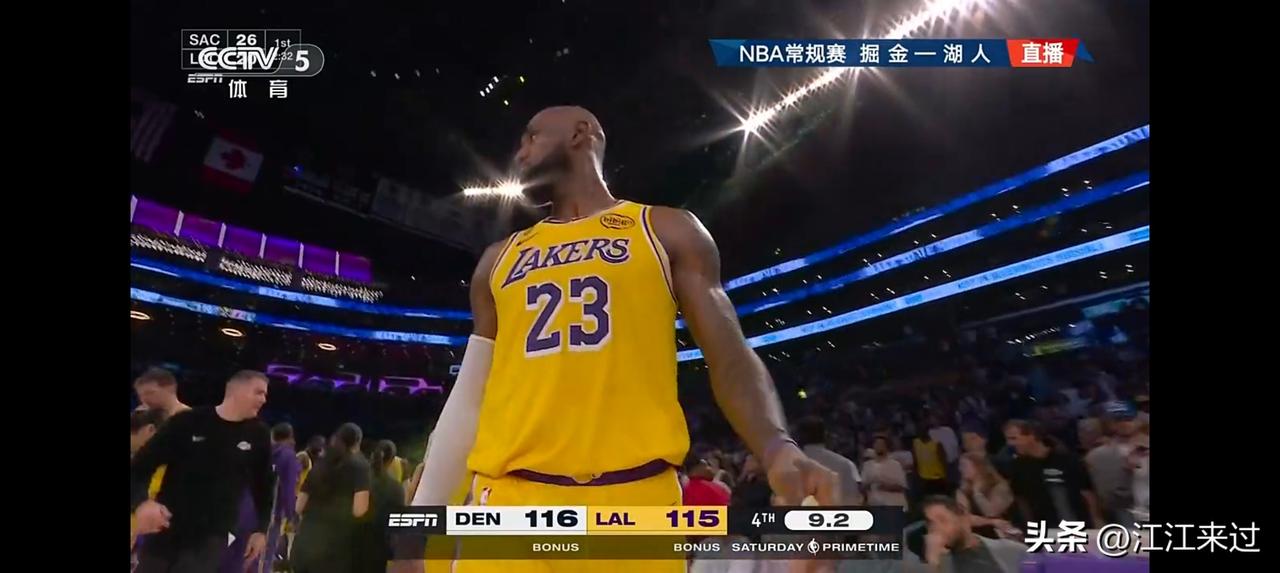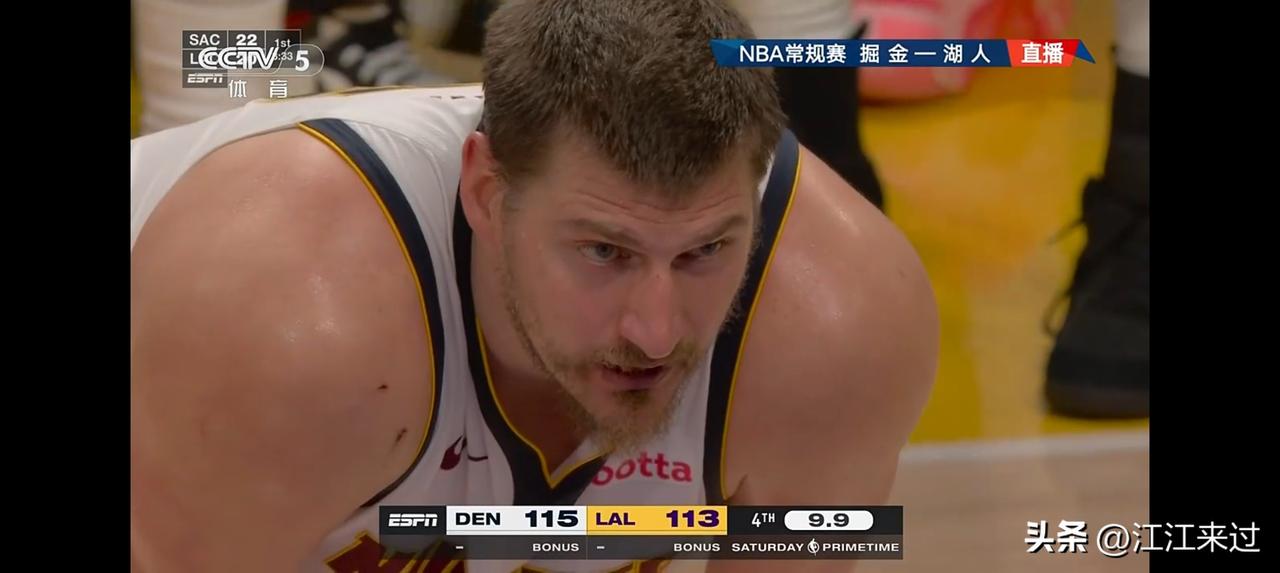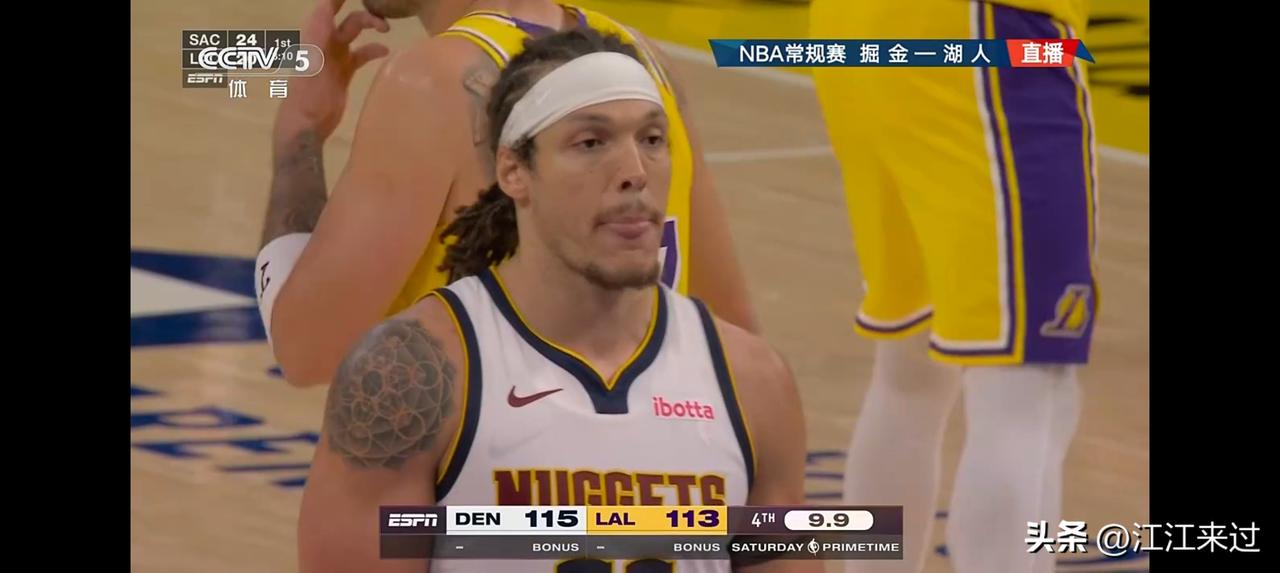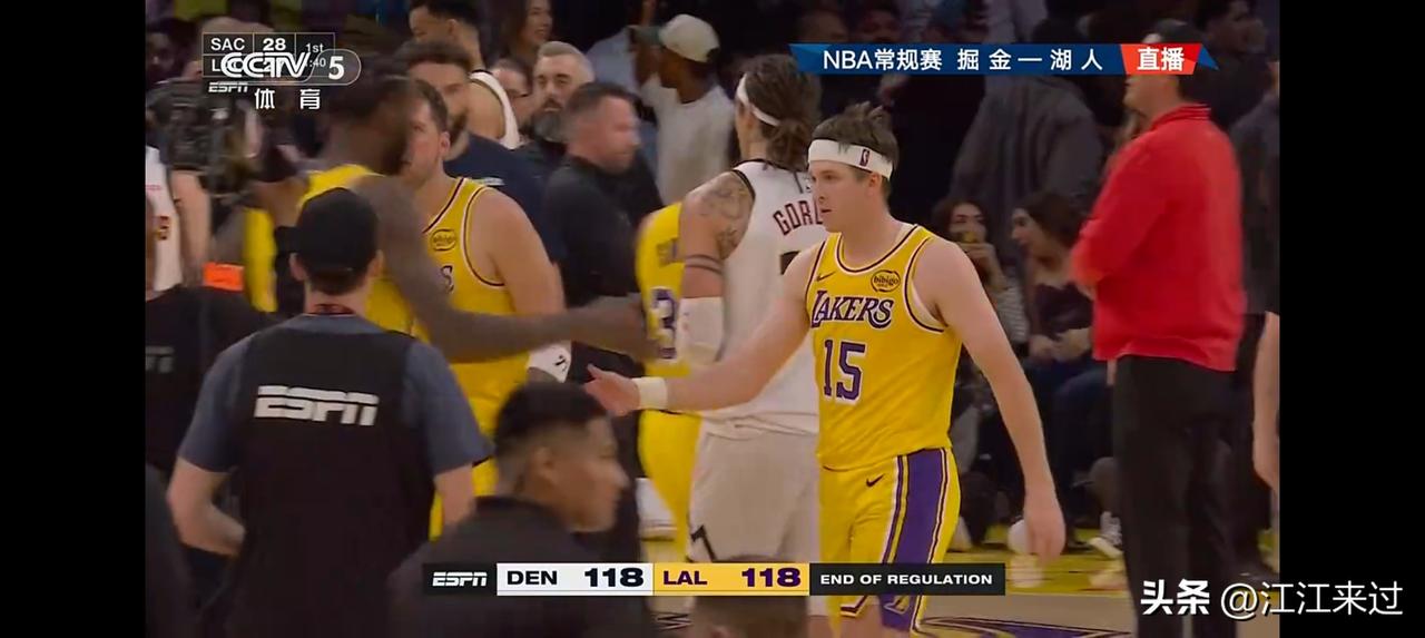 里弗斯最后1.9秒罚点球故意不进自己抢到前场篮板极限中投命中,湖人118比118战平掘金,双方意犹未尽,进入加时! 东契奇和约基奇这两个国际大杀器均得到20+三双! 穆雷14中1,三分球7中1,仅得到5分! 加时赛湖人127比125险胜掘金!东契奇和里夫斯均30+!湖人未来基调已定!
