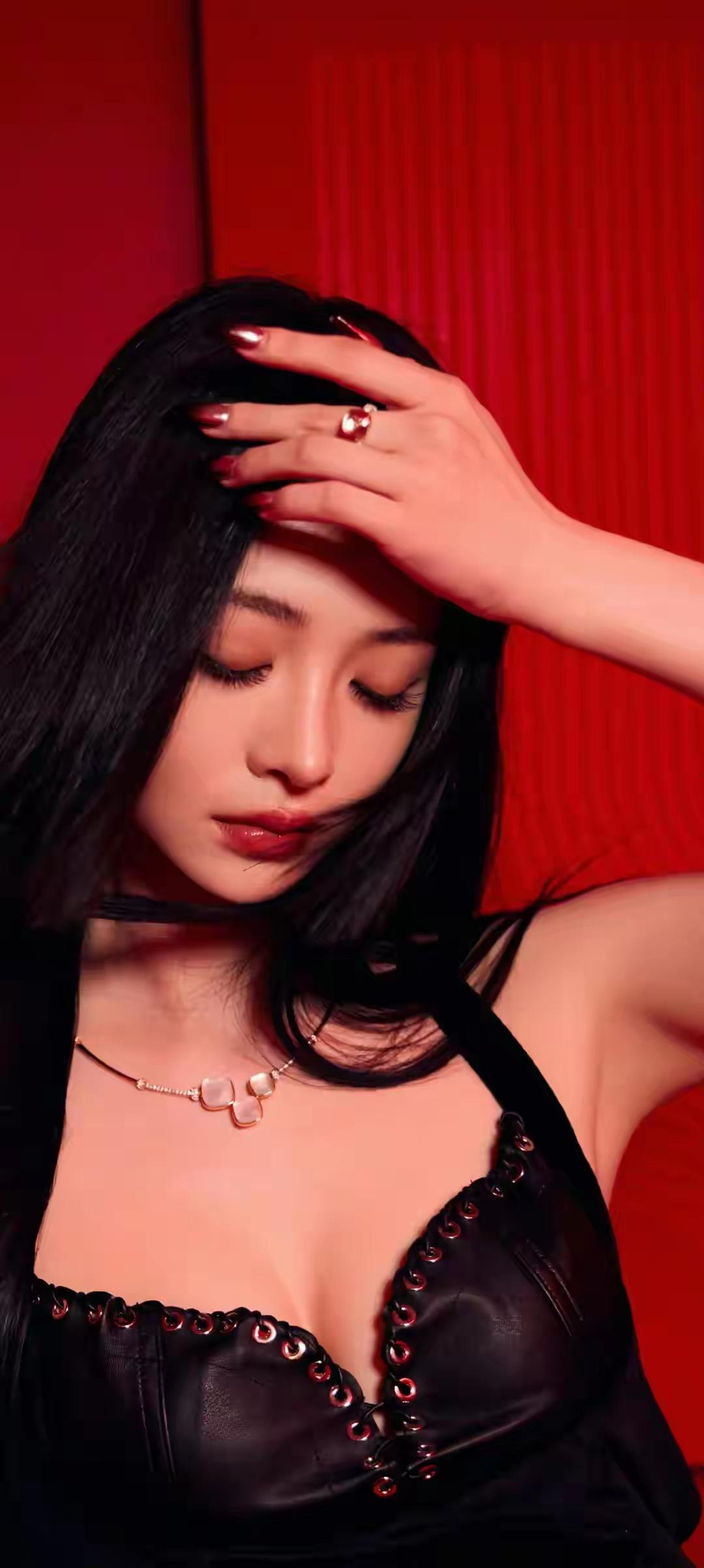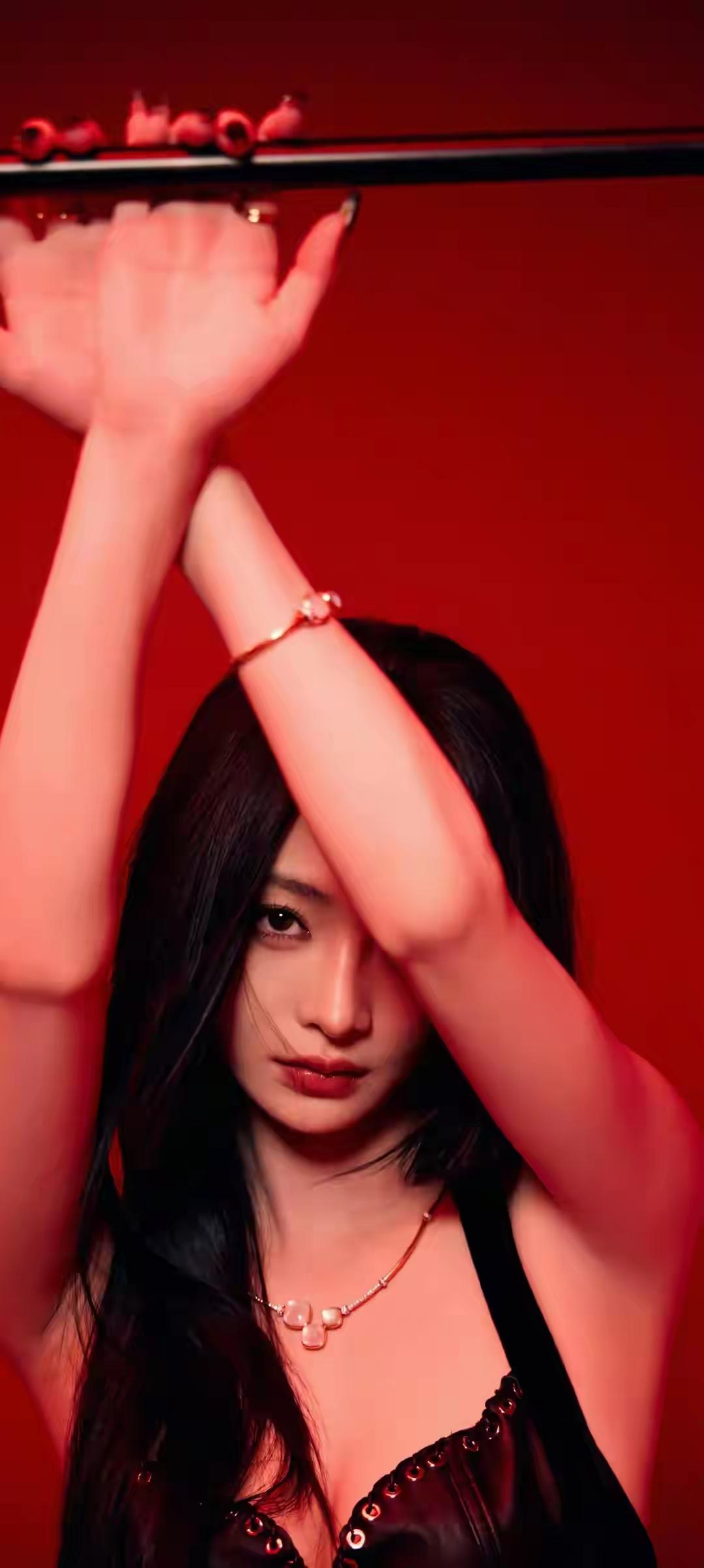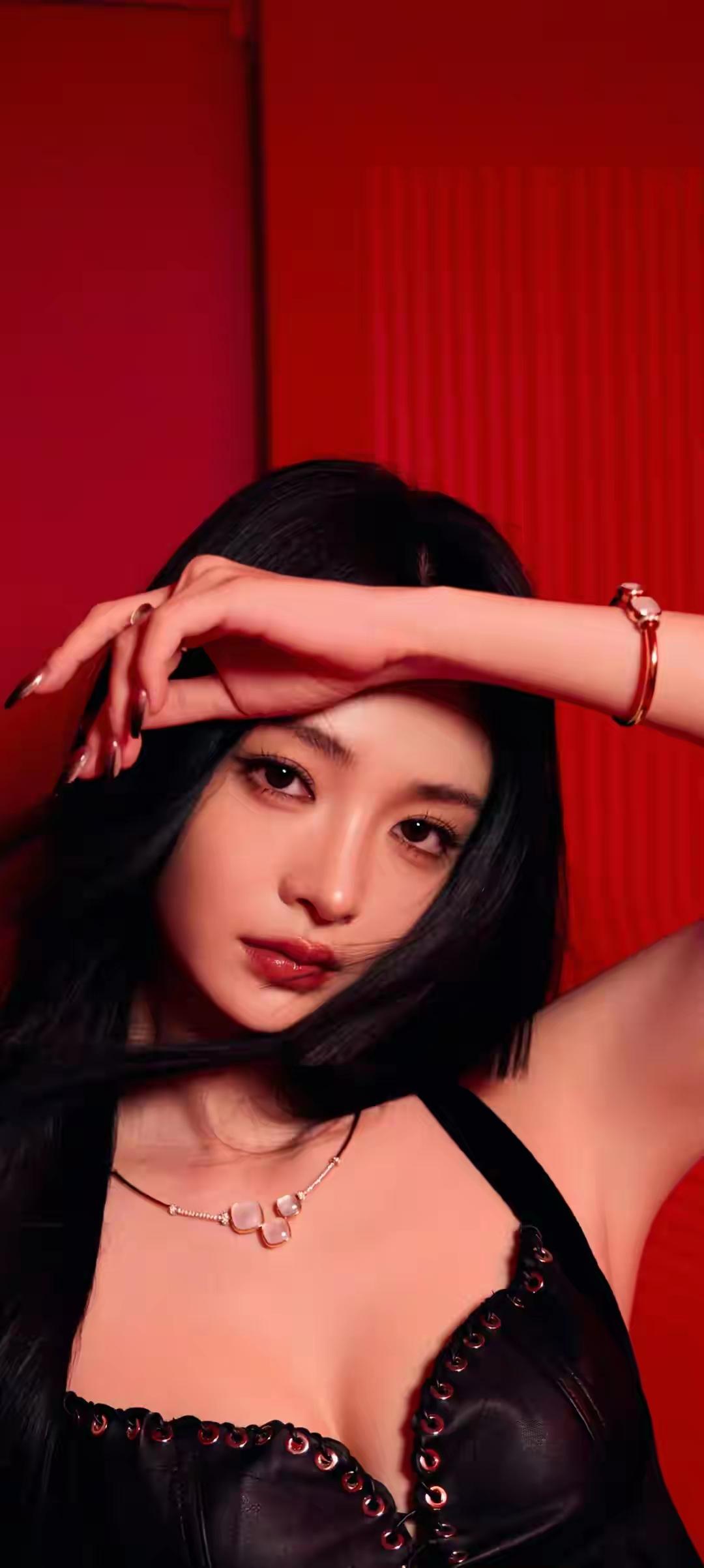 美女壁纸~单依纯,烈焰红妆,暗夜绽放。黑与红的极致碰撞,勾勒出冷艳又炽热的致命吸引力,每一帧都自带气场,又野又飒