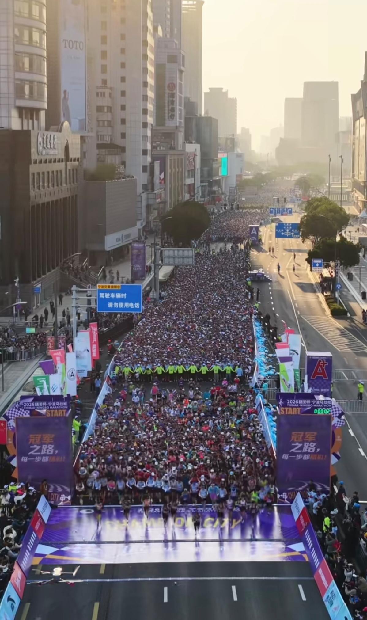 2026年3月15日7时,宁波马拉松在阳光广场开跑。据报道,今年的马拉松有27000人参跑,他们来自全国各地以及46个国家和地区。其中马拉松12000人,半程马拉松参与人数为15000人。参跑现场是人山人海,在阳光的映衬下,更加显得活力四射,运动无限。