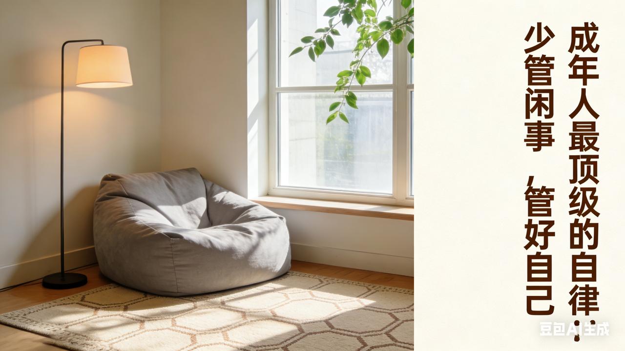 成年人最顶级的自律:少管闲事,管好自我 人至中年,愈发领悟一个道理: 少干预他人,多关爱自己,生活方能顺遂。 别人的家事,不插嘴、不评判、不介入。 别人的选择,不指点、不说教、不否定。 别人的情绪,不承接、不内耗、不担责。 别人的圈子,不硬融、不讨好、不卑微。 自己的日子,不攀比、不焦虑、不迁就。 自己的心情,不委屈、不压抑、多愉悦。 自己的身体,多爱惜、少熬夜、多休憩。 少生气,少计较,少较真,多释怀。 心放宽,事看淡,人自在,福自来。 余生,只对值得之人好,只过舒心的日子。 人这一生, 管好自己,便是上上签。 少管闲事,堪称大智慧。 你认为,人是否越不理会闲事,就越幸福? 评论区交流一下~善待自己语录 余生安静自己 管好自己最靠谱 注:图片由AI生成!