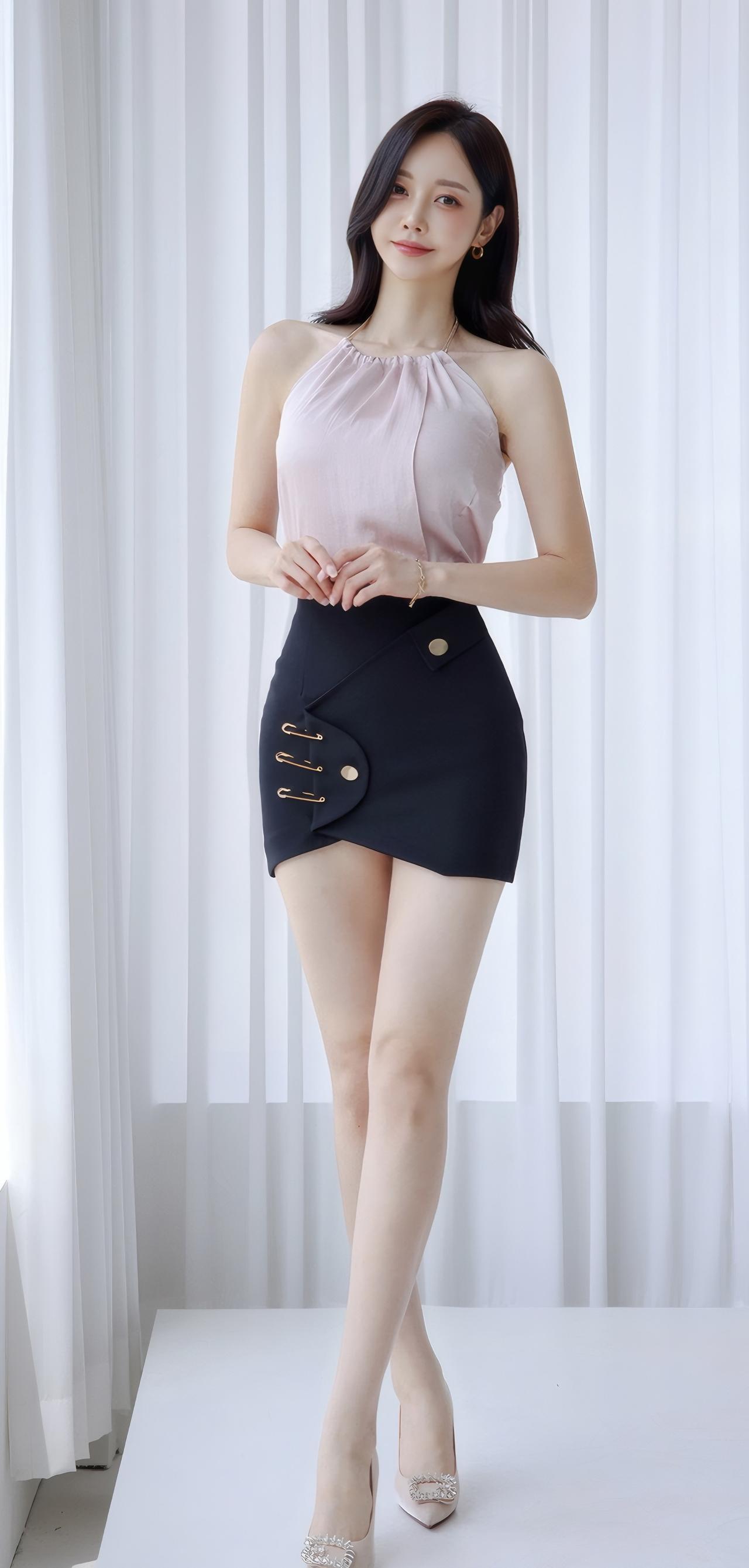 优雅气质穿搭,粉色上衣+黑色短裙,高跟鞋点缀,完美展现女性魅力!