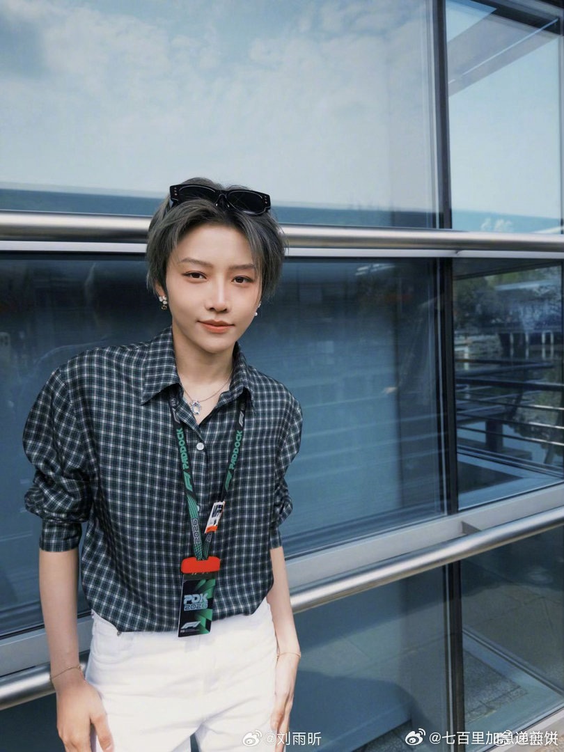 刘雨昕亮相f1赛场,今天一整个帅气十足