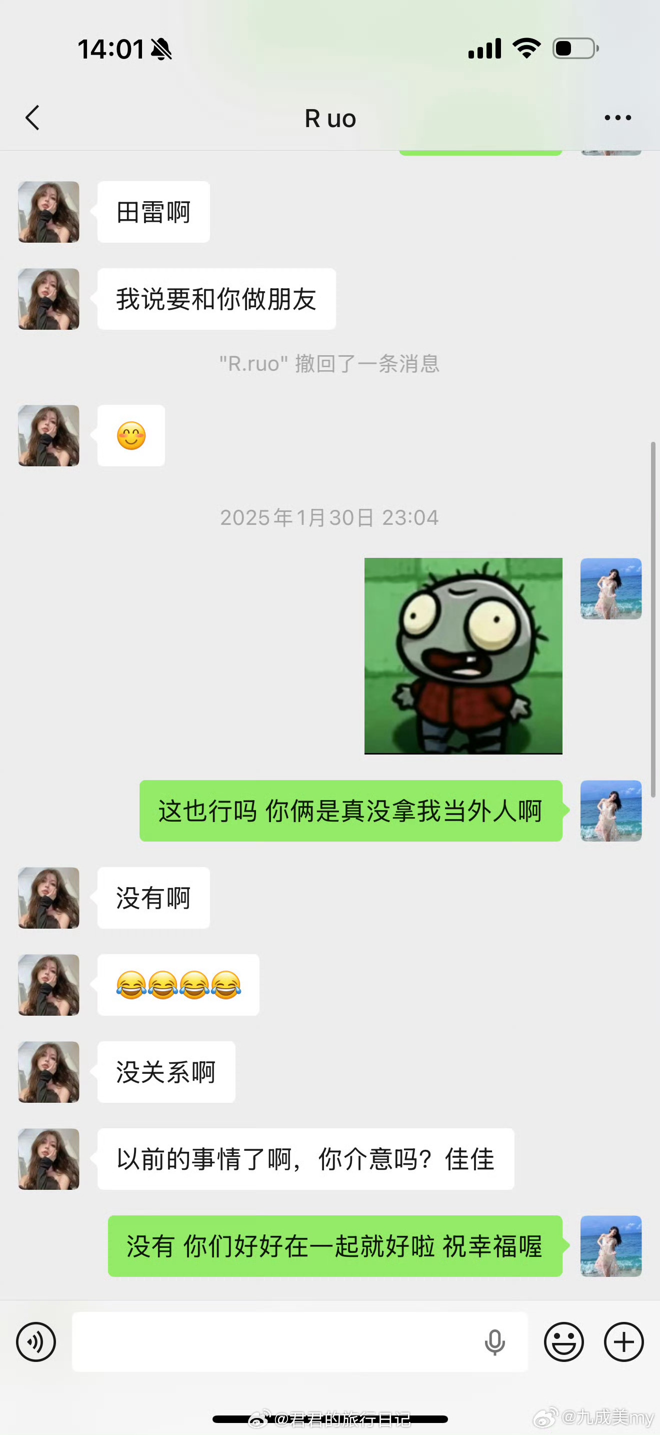 OMG,九成美女士发了她和田栩宁、若若(网传现女友)的聊天记录。