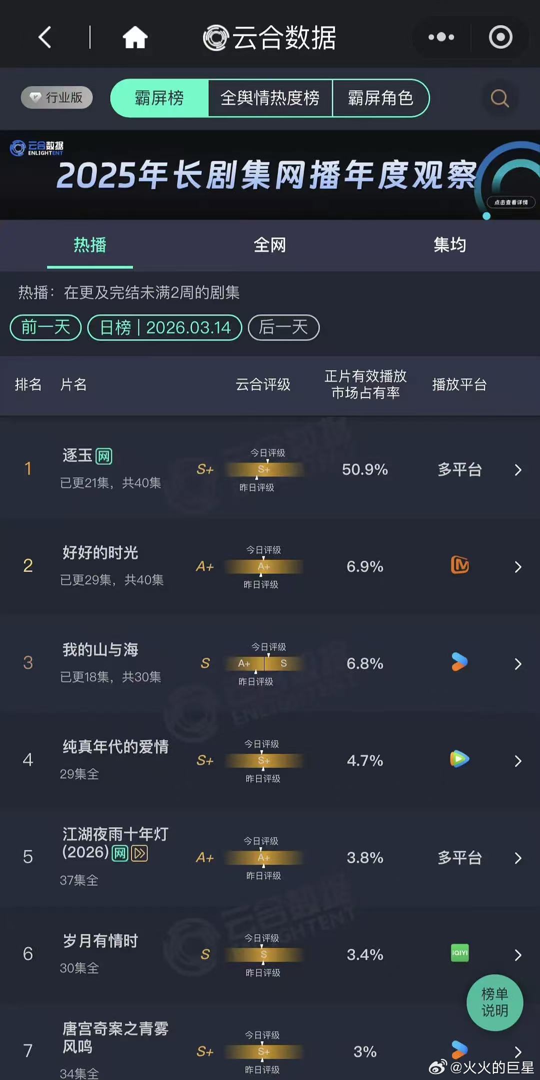 逐玉云合占有率50.9%逐玉云合占比破50.9% 哇塞!居然破了50.9%