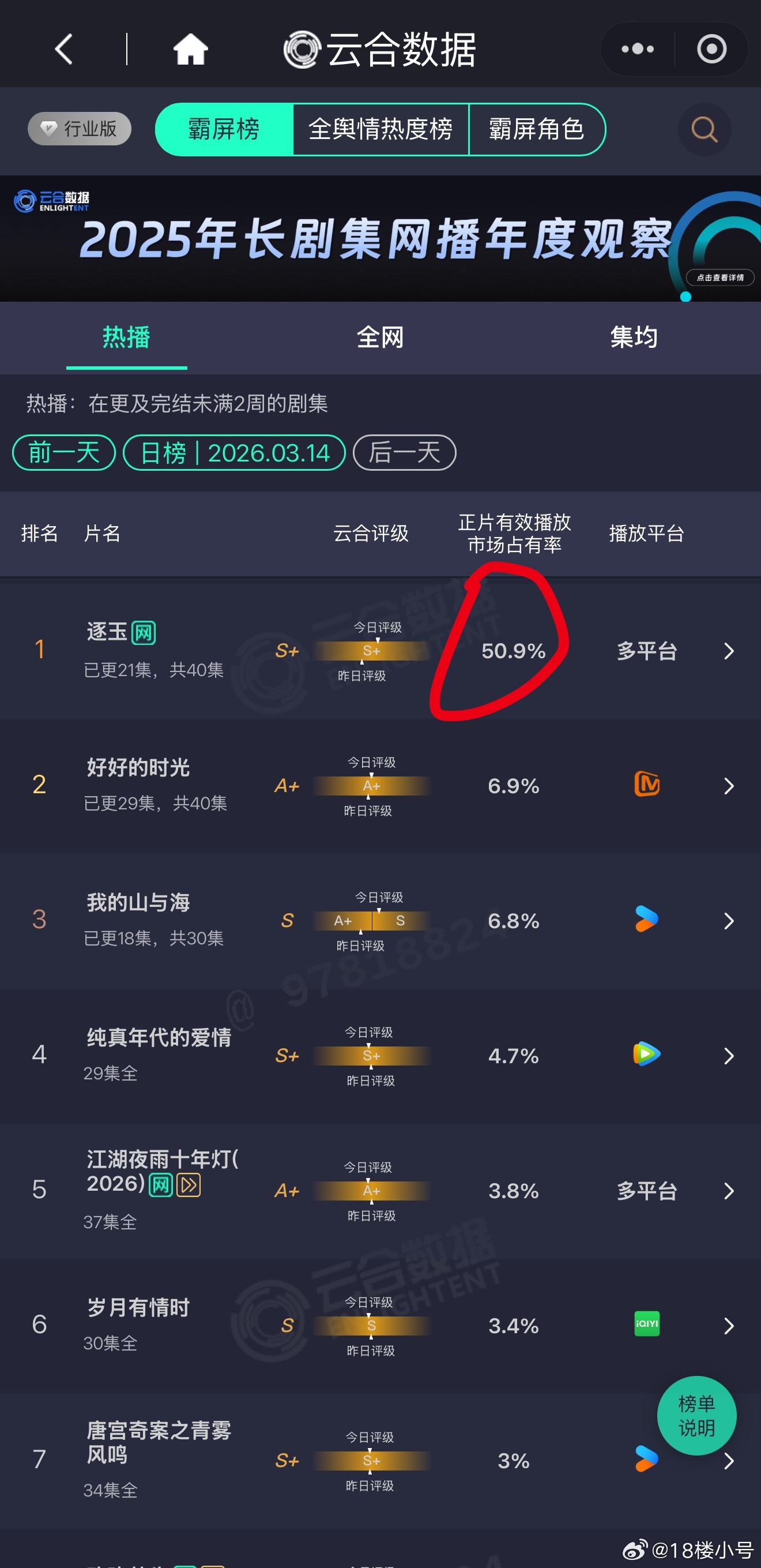 我的娘啊,逐玉昨日云合市占率50.9%……我从未见过这个数字……狂飙当时我还不知道云合