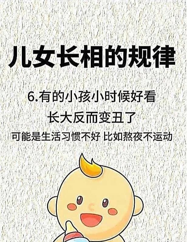 6. 小时候很好看:长大后反而变丑,可能和熬夜、不运动等不良生活习惯有关。